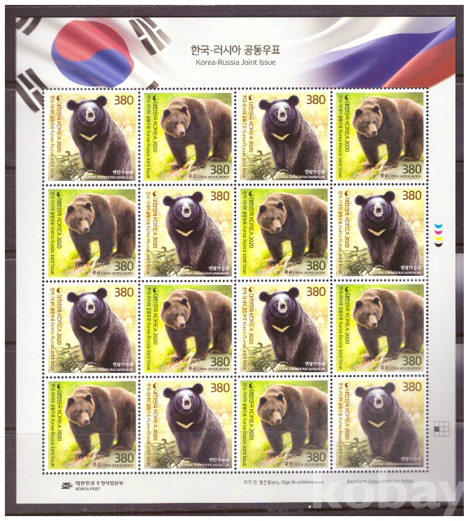 (한국전지) 2020.12.15 한국-러시아 공동우표 sheet of 16 MNH