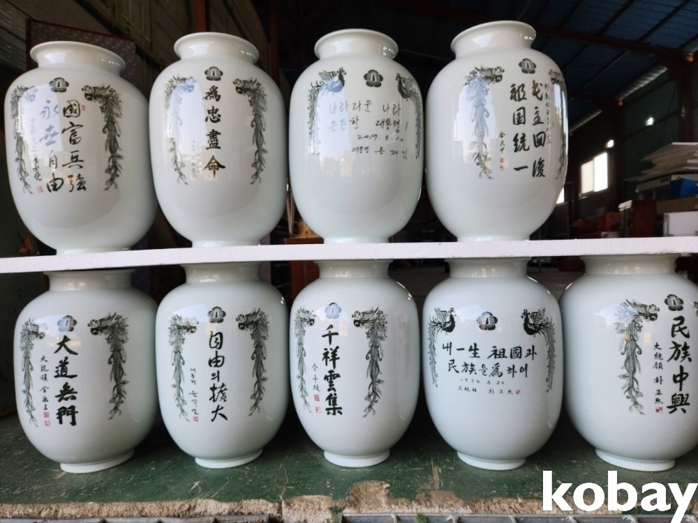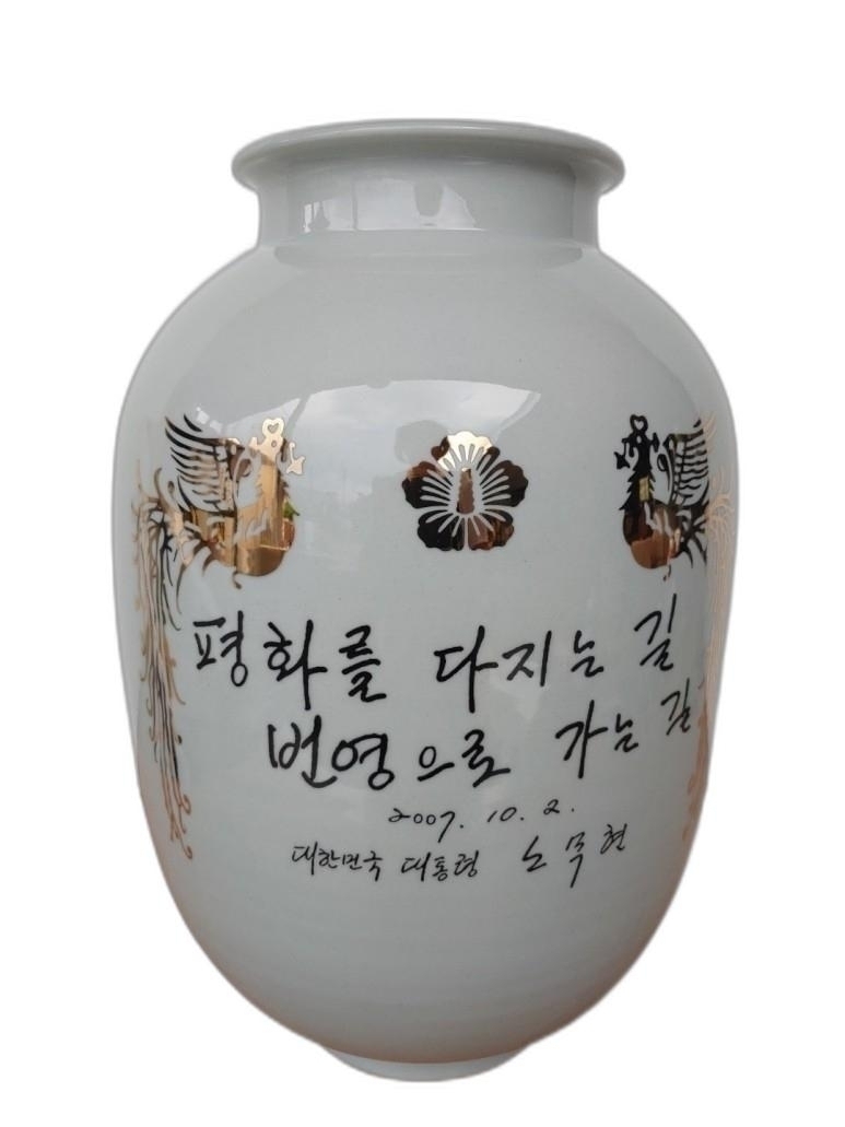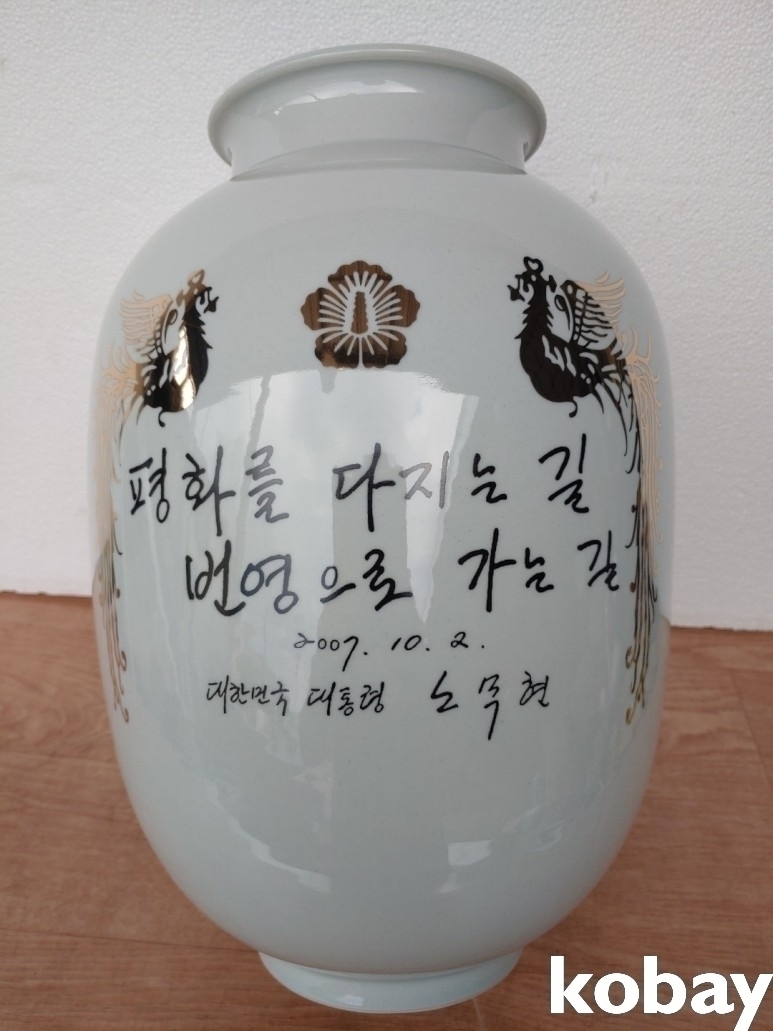 평화를 다지는 길 번영으로 가는 길 글씨 도자기 입니다.