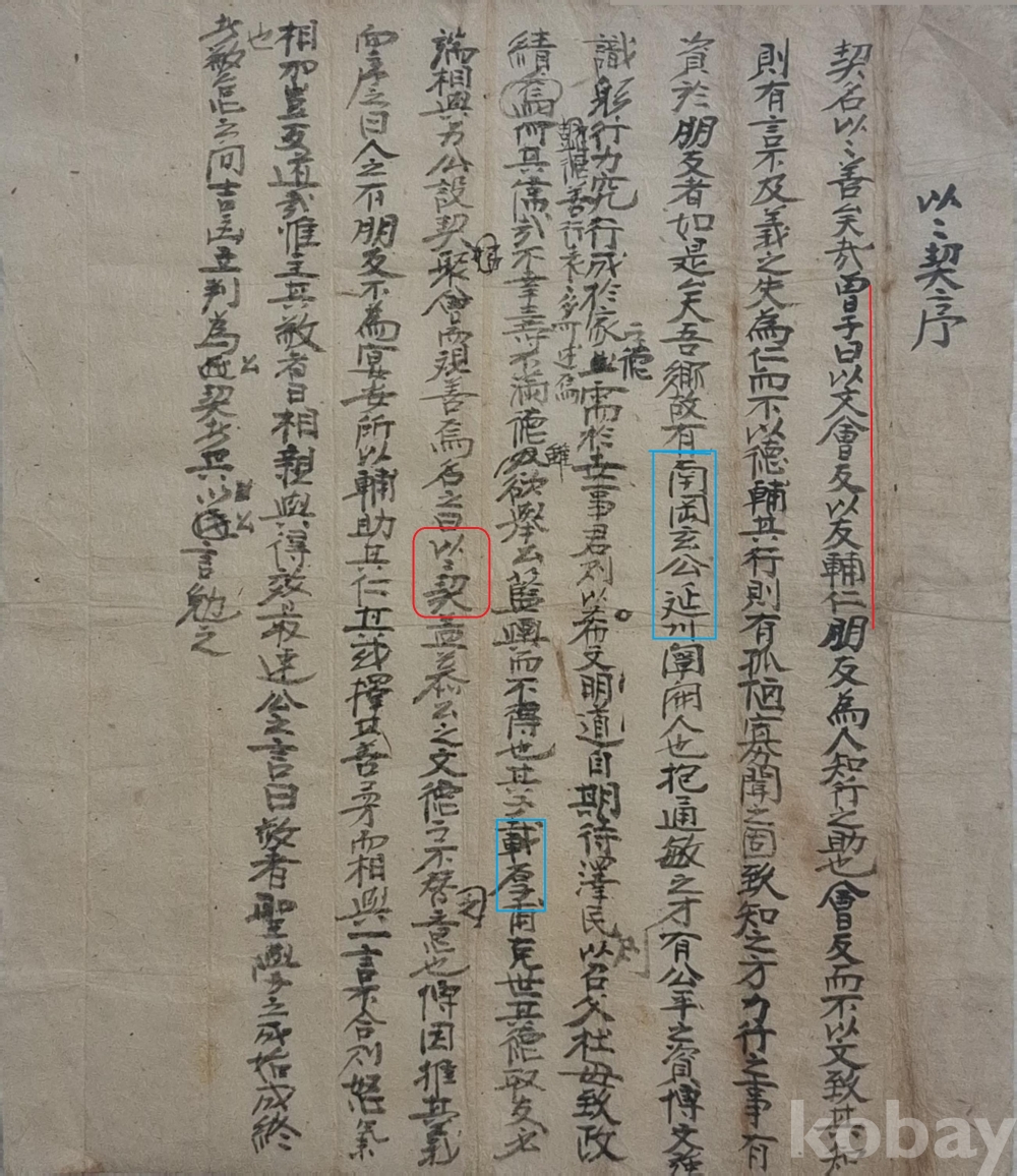 ◈ 이이계(以以契)라는 이름은 공자의 제가 증자(曾子)가 말한 ‘군자는 학문을 통해서 벗을 모으고, 벗을 통해서 자신의 인덕을 보완한다.[君子以文會友 以友輔仁]’에서 가져온 말이다.