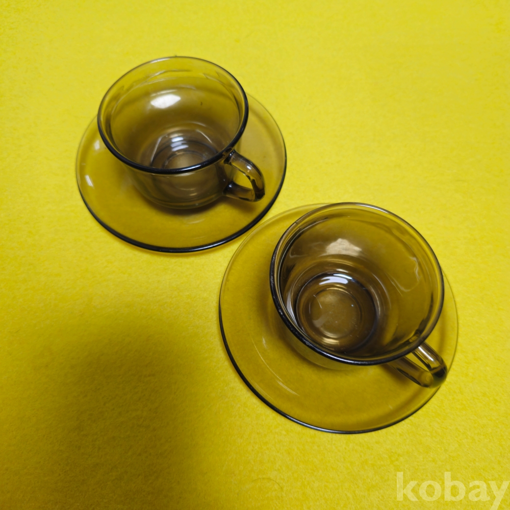 (((빈티지커피잔/고전커피잔))) 오래전 프랑스에서만든 아코록 (Arcoroc) 커플 빈티지 커피잔