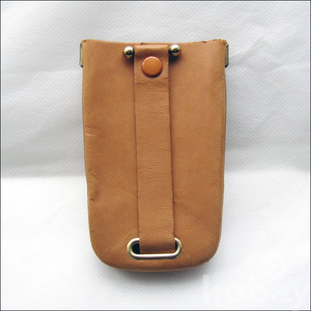 고리에 열쇠를 걸고 똑딱이를 당겨 채우면 열쇠기 가죽 집 안으로 들어갑니다.