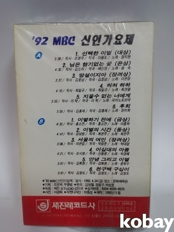 1992년 MBC신인가요제 카세트 테이프 미개봉