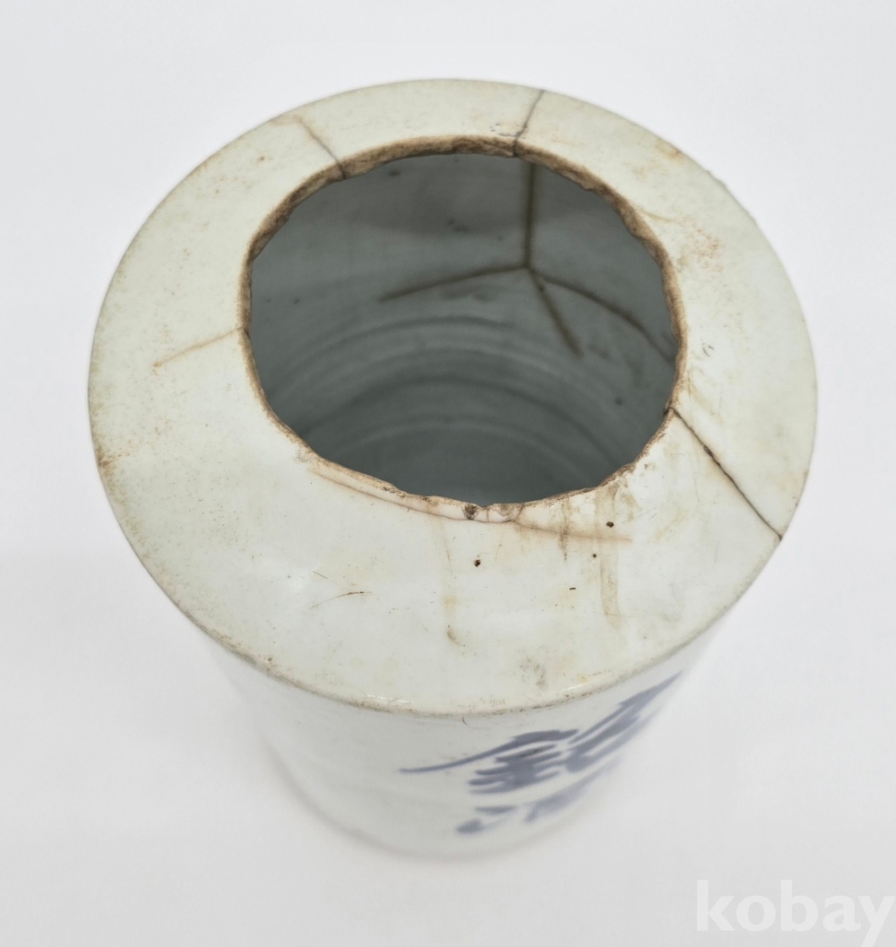 백자에 청화로 명문이 적힌 도자기입니다.