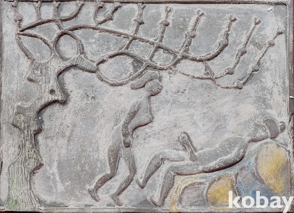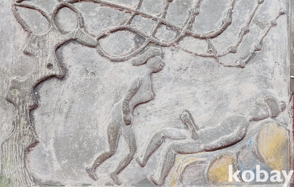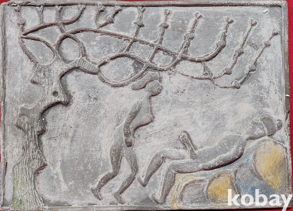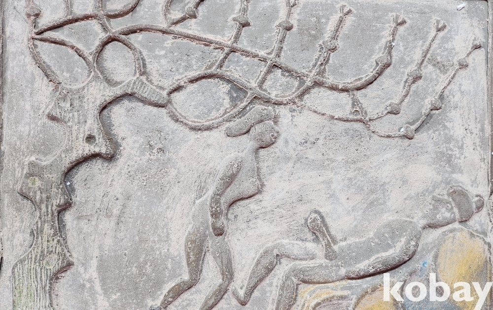 높은 연대를 갖춘 고목(古木 과 남녀가 함께하는 문양 전돌입니다,