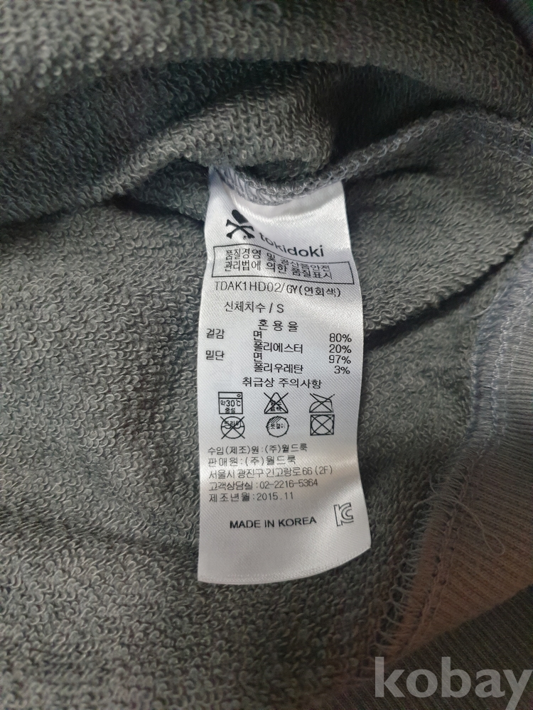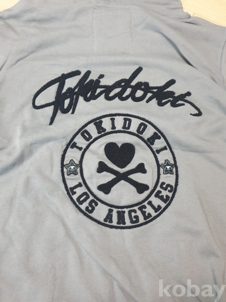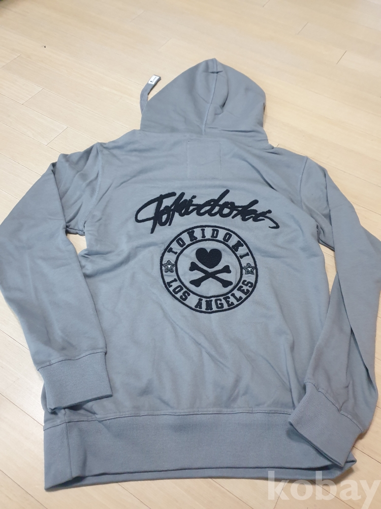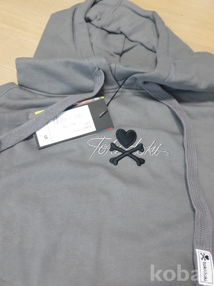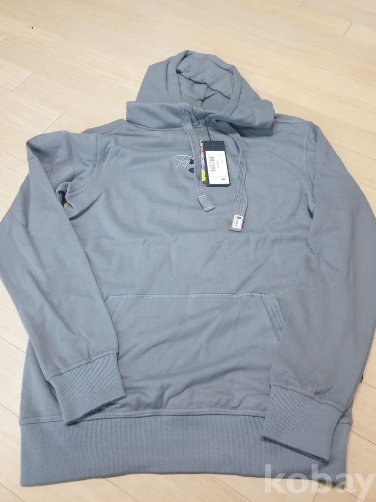 [천원경매] 3-286 뒷판 자수 있는 진그레이 후드 티셔츠 (택있는 제품, 사이즈 S, 가슴단면 52cm, 길이 66cm)