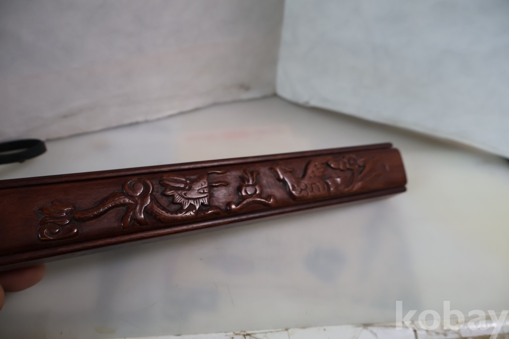 일본 혹은 중국 고급 문 봉황과 용 조각된 명품 조각 되어진 정성과 치밀함을 가진 젓가락 상자 임니다 단단 함니다 두터운 조각을 가진 명물 임니다 유일무이한 명품 로즈우드 단단한 장미목