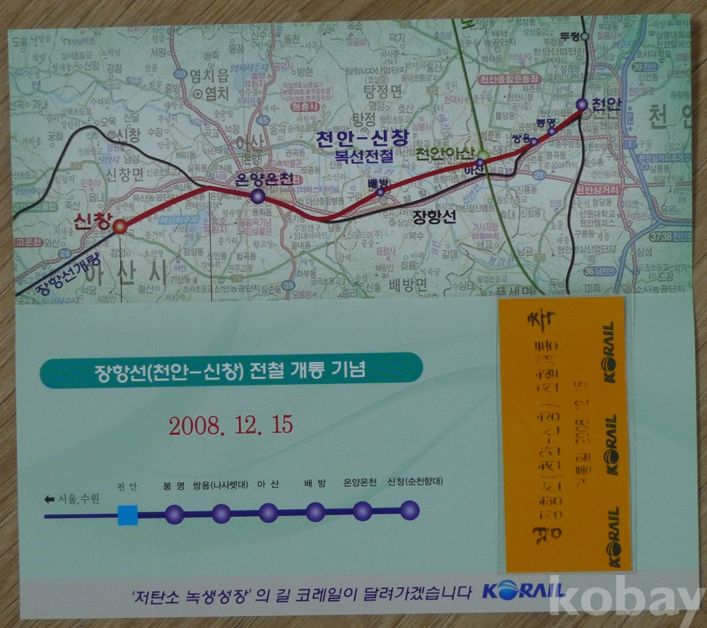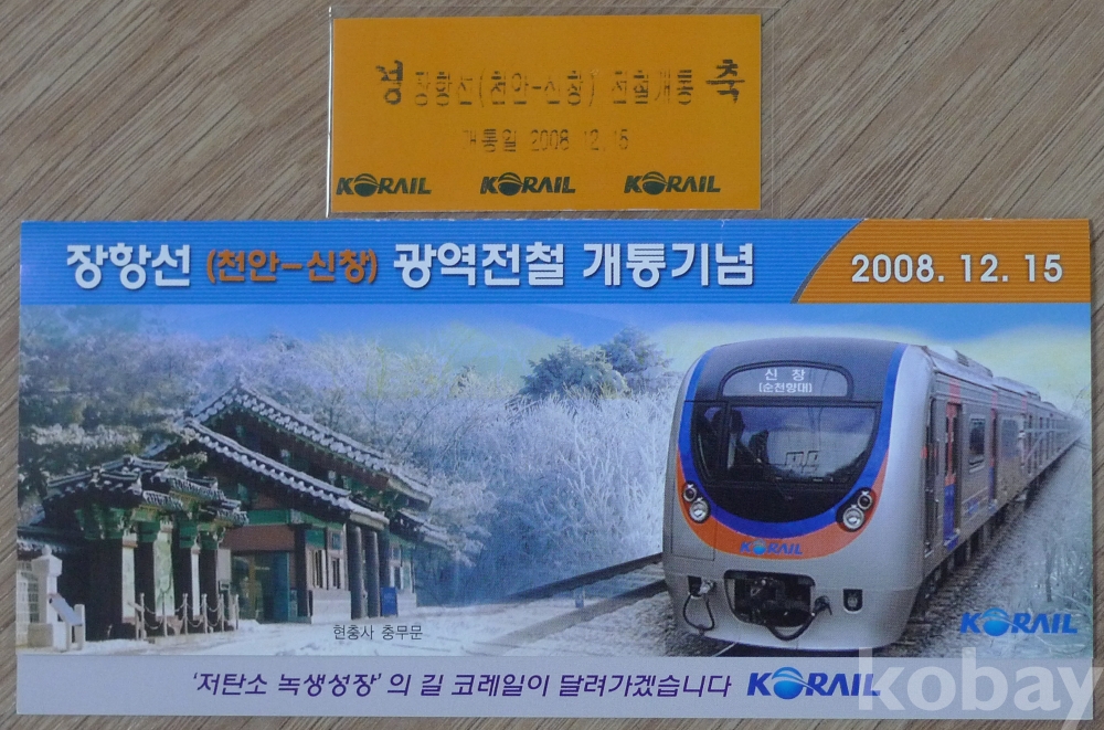 2008년 장항선(천안 - 신창) 광역 전철 개통 기념 지하철 승차권