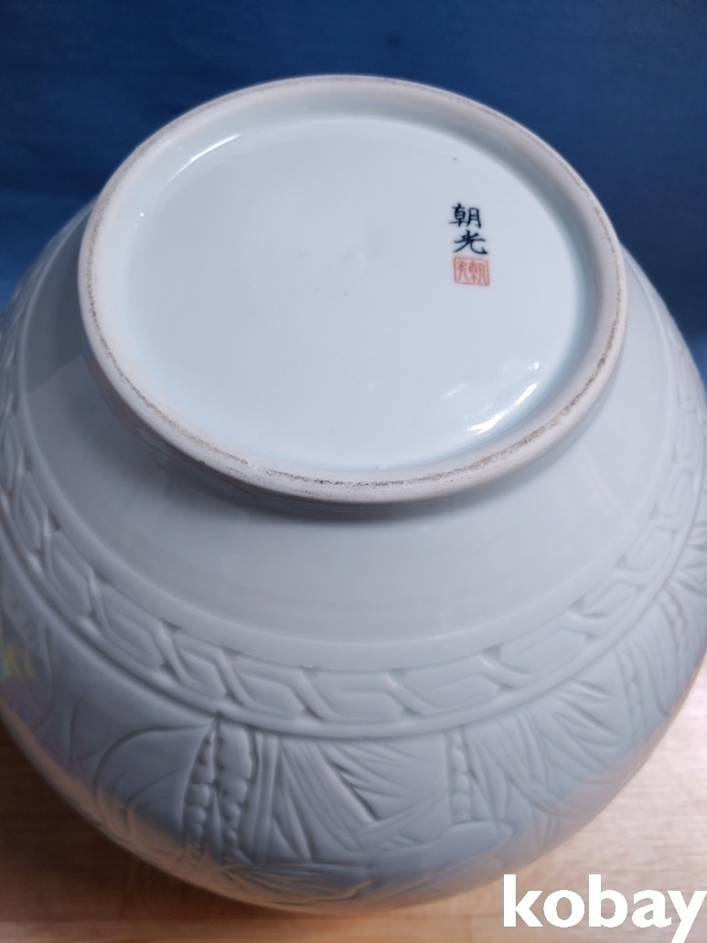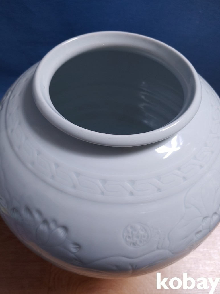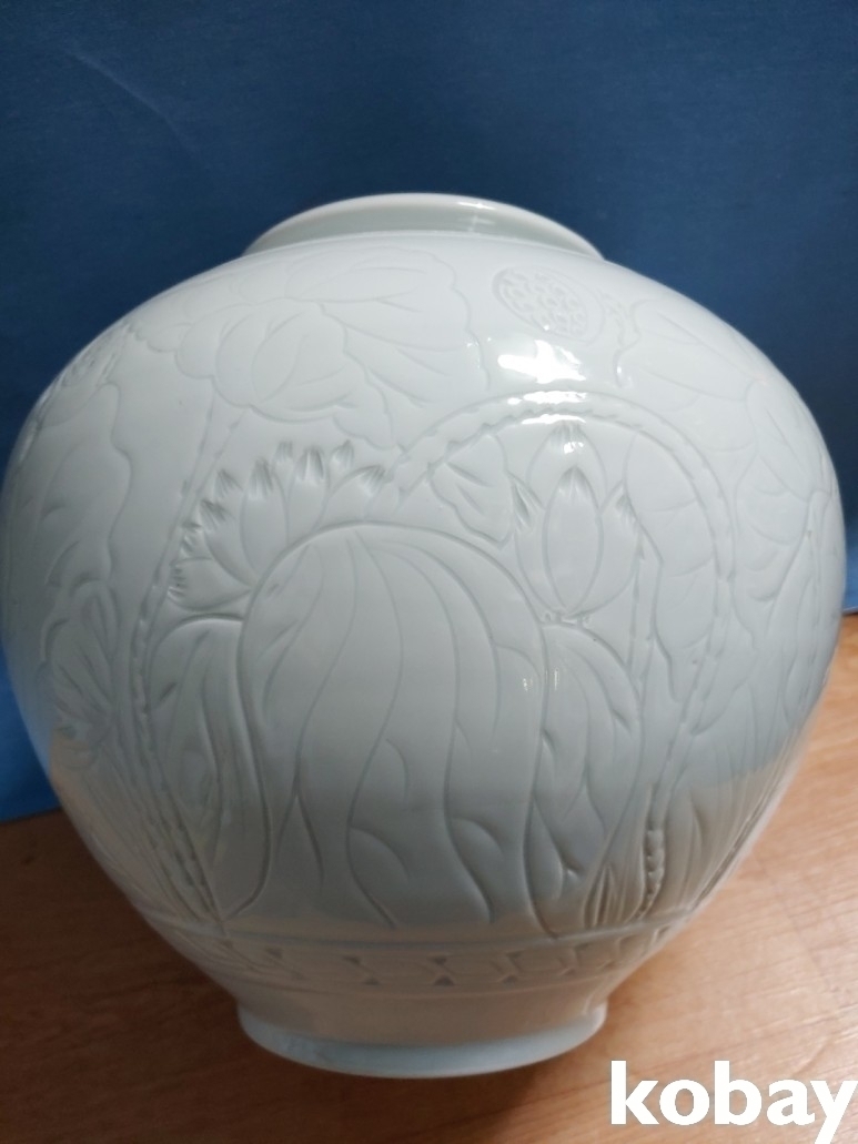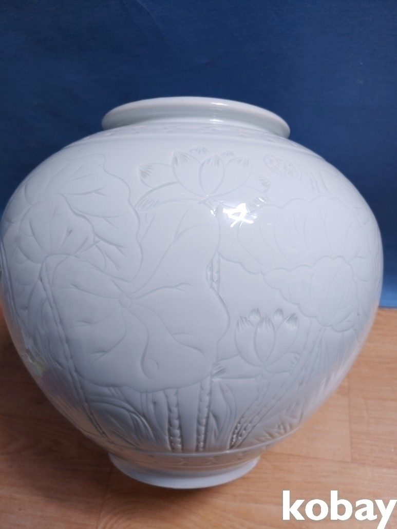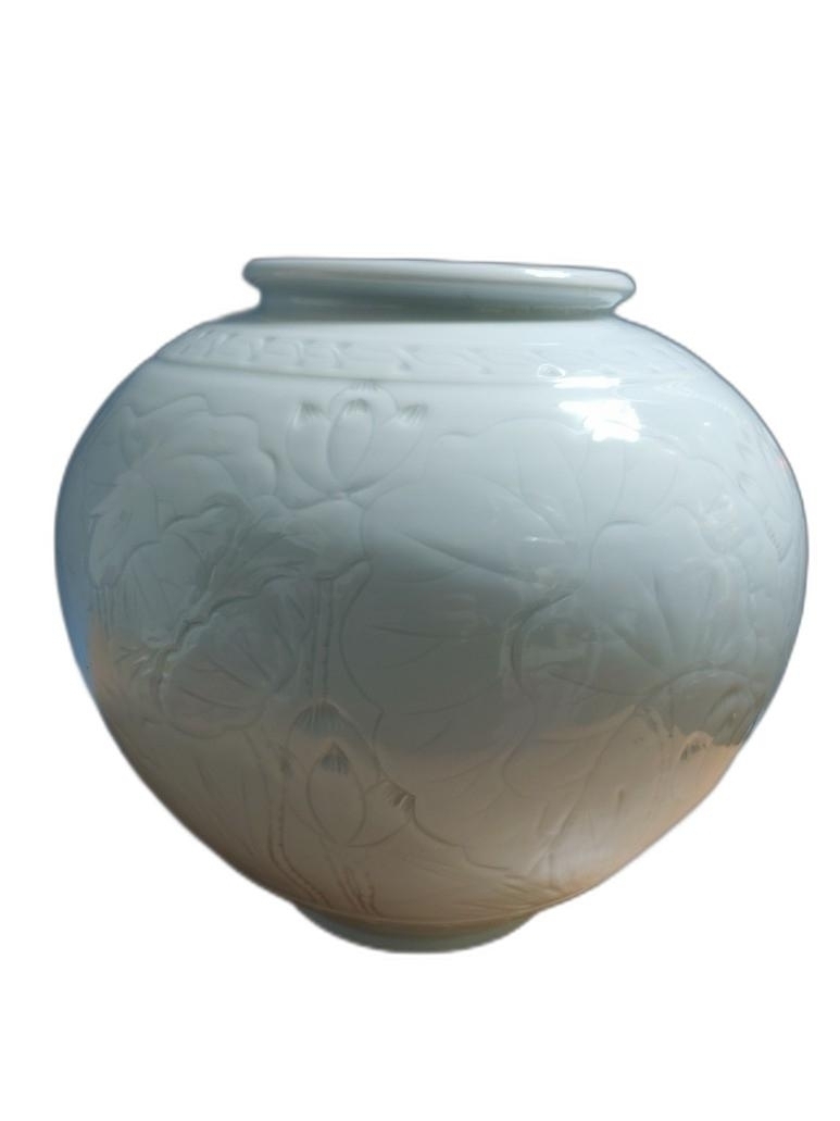 연꽃 모양이 음각으로 있는 달 도자기 입니다.