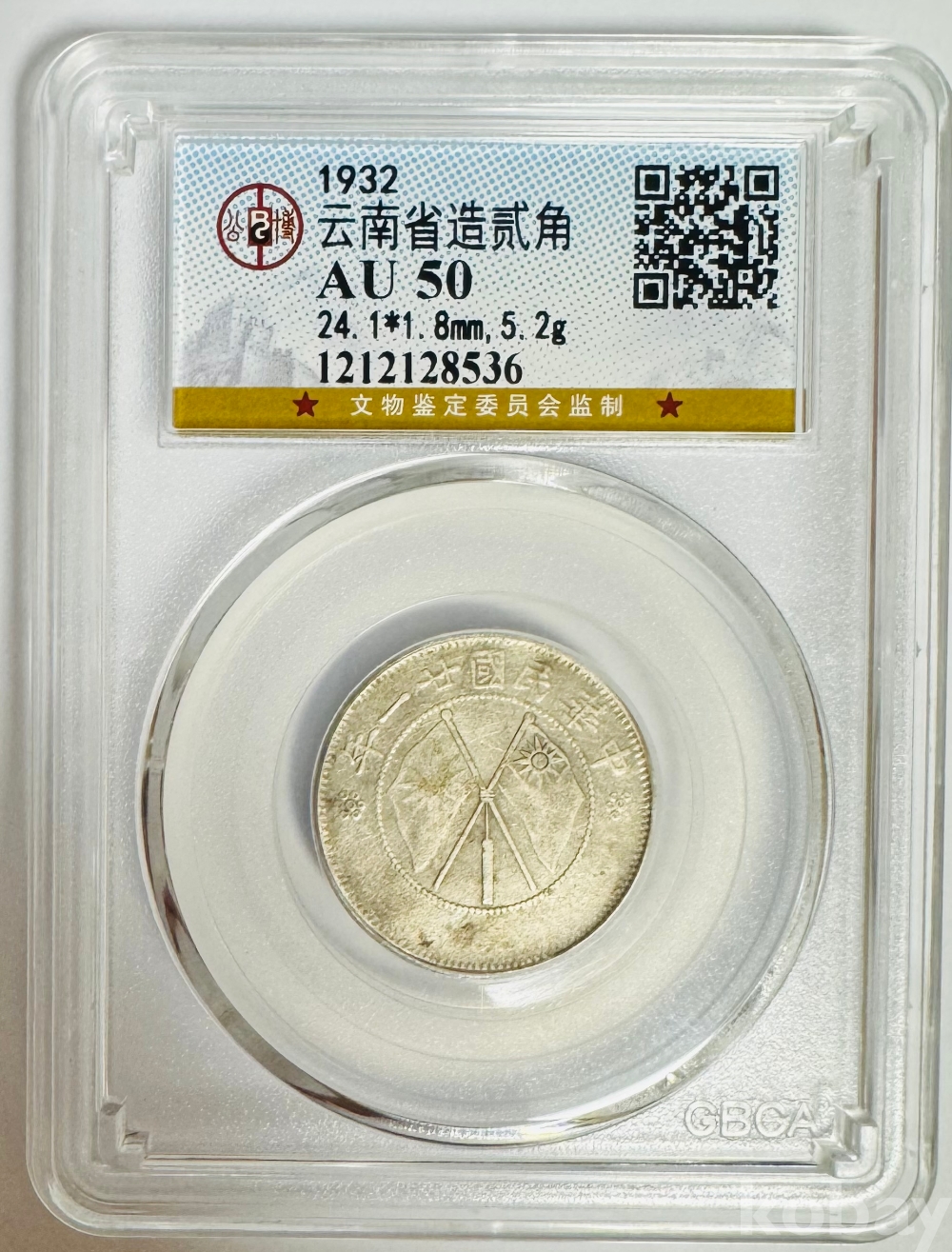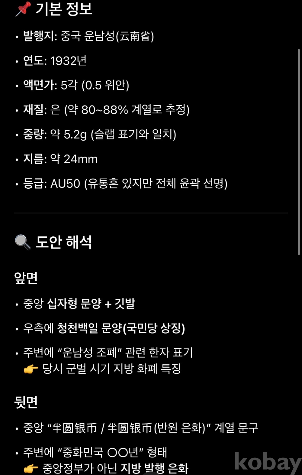 [은화] 1932년 중국 운남성 5각 은화 AU 50