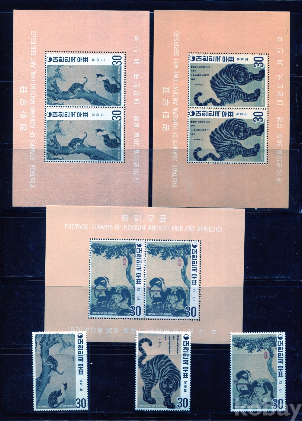 - [시트/우표] 1970년 명화시리즈 2집 천공 시트 3종/우표 ( MNH : Mint Not Hinged,뒷면 힌지자국없는 깨끗한 상태)