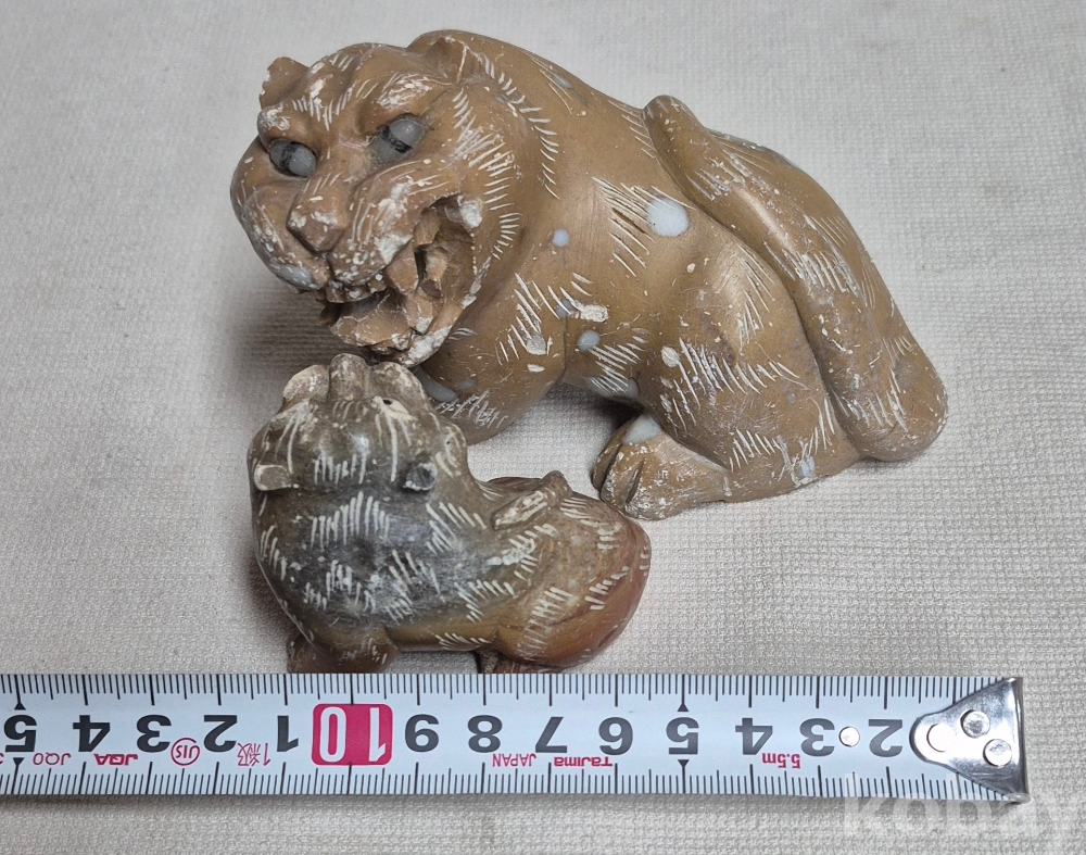 오래전 만들어진 까치호랑이 조각상으로 상태는 장기간 보관으로 부분 튐(2,3,4번사진)과 생활흔적이 있습니다. 크기와함께 사진으로 확인후 신중한 입찰바랍니다.