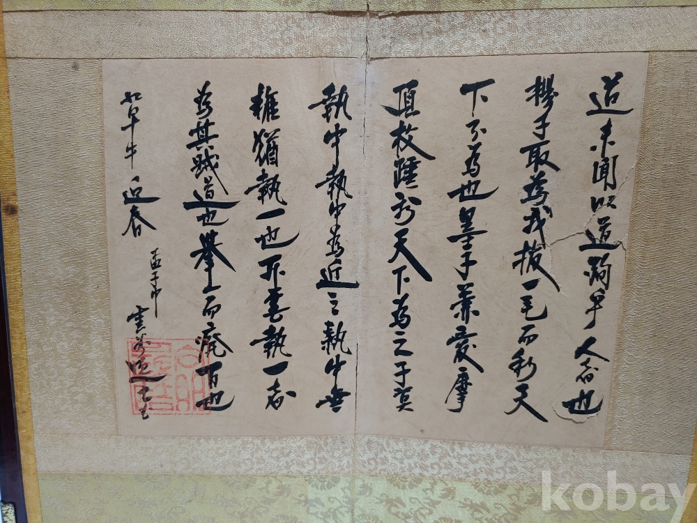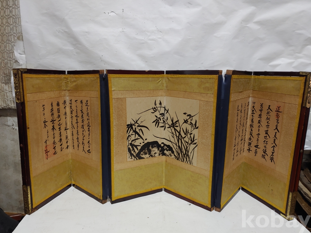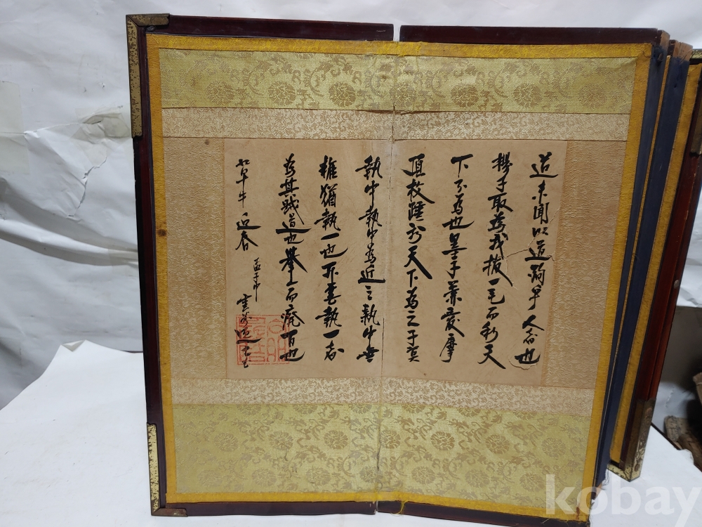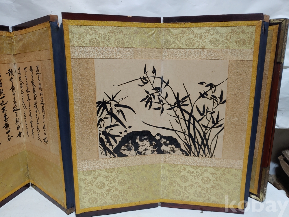 왼쪽에 있는 간찰 글씨에 찢어진 부분이 있으며 병풍의 뒷면에 종이가 찢어진 부분이 있으오니 참고로 하여 주세요