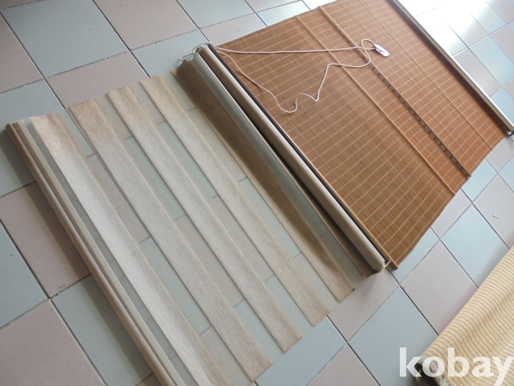 대나무을쪼갠 대나무자동발과 좋은합섬유로 만든 자동발 2점 대나무발 가로세로 107 x 130 cm 외사진참조