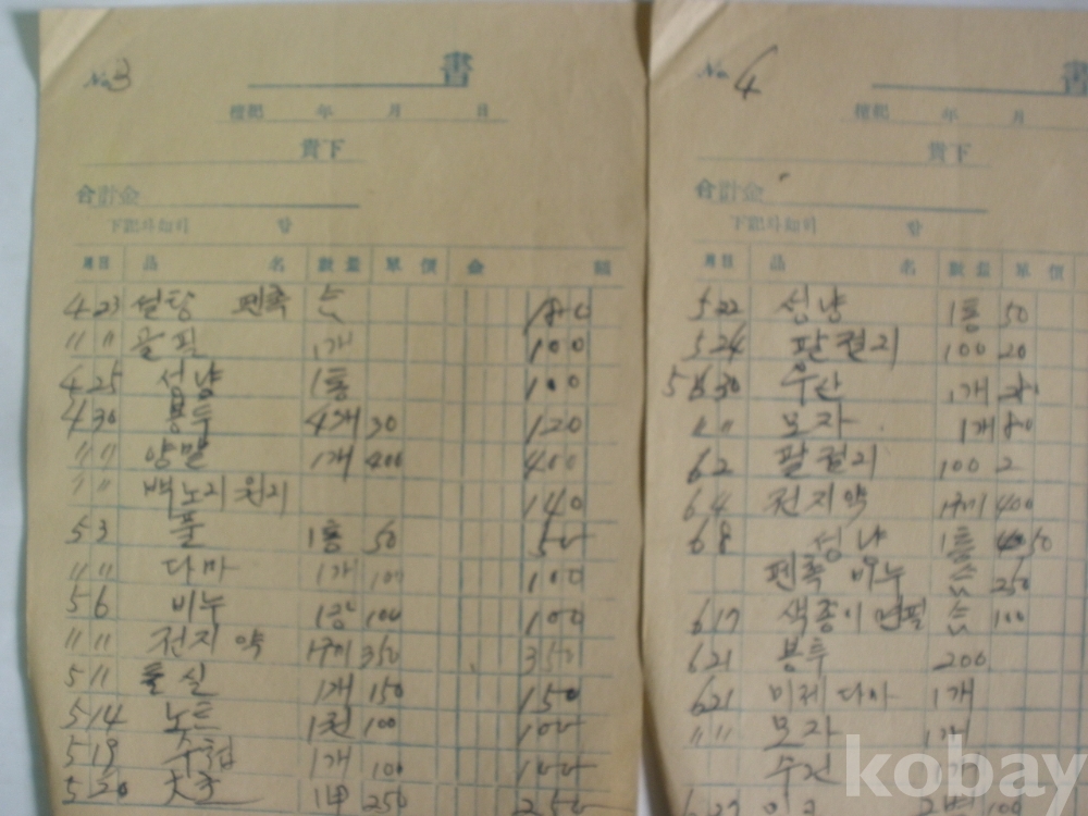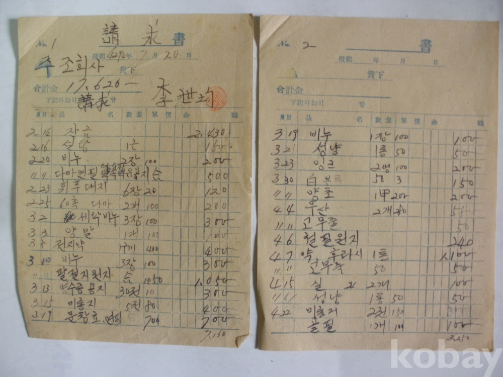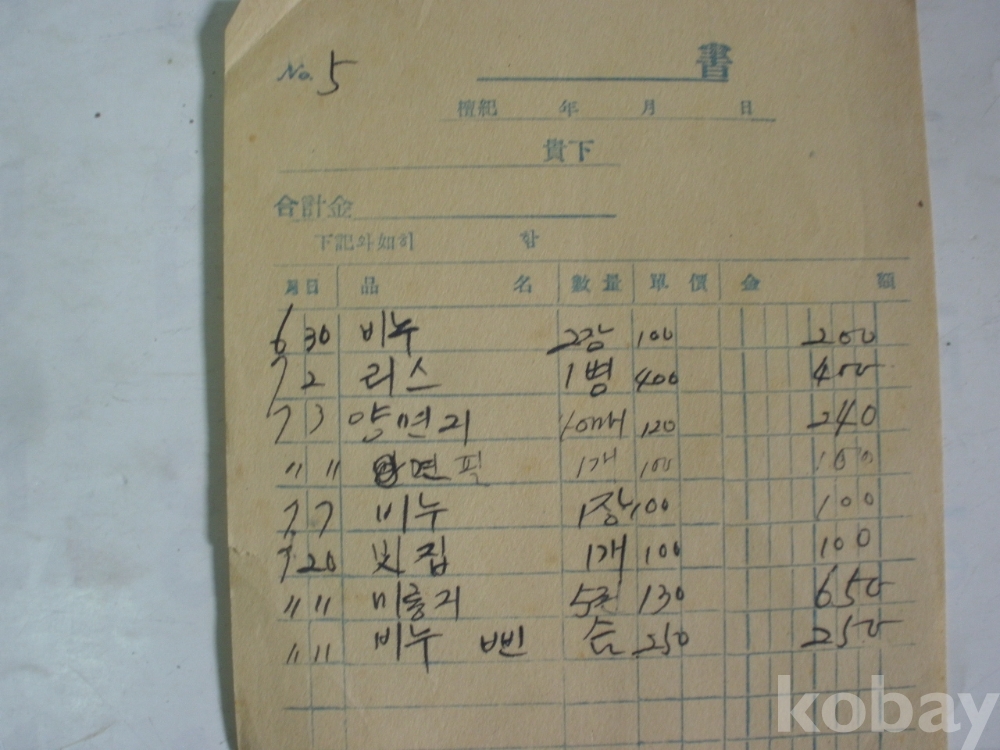 주조회사 청구서 - 다마연필, 휘푸대지, 철필원지, 빗집 등 (1961년)