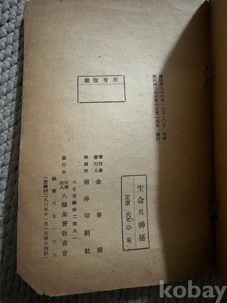 ★1950년 책 [생명의신비] A.C모리슨저술,(홍성영번역) 창조주의 존재를 증명하는....(수집가치있음)