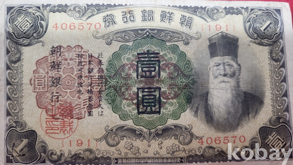 T ㅡ2권 5호 넷좌번 ////// 일제강점기 때 사용되었던 조선은행의 일원 지폐입니다,