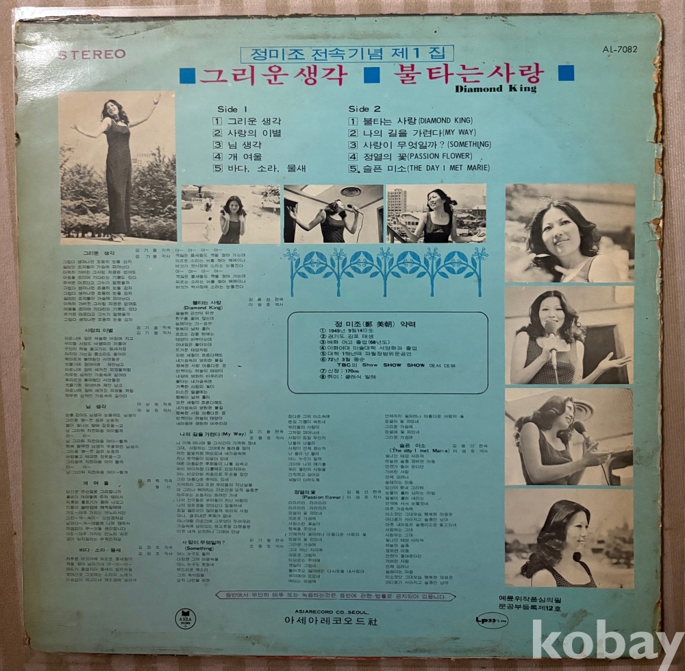 ★★(가요음반 -초희귀사인반 LP) '정미조 전속기념 제1집' 1972년