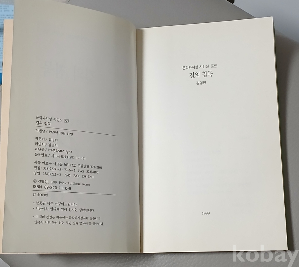 [초판본시집] 길의 침묵 - 김명인 1999년초판발행