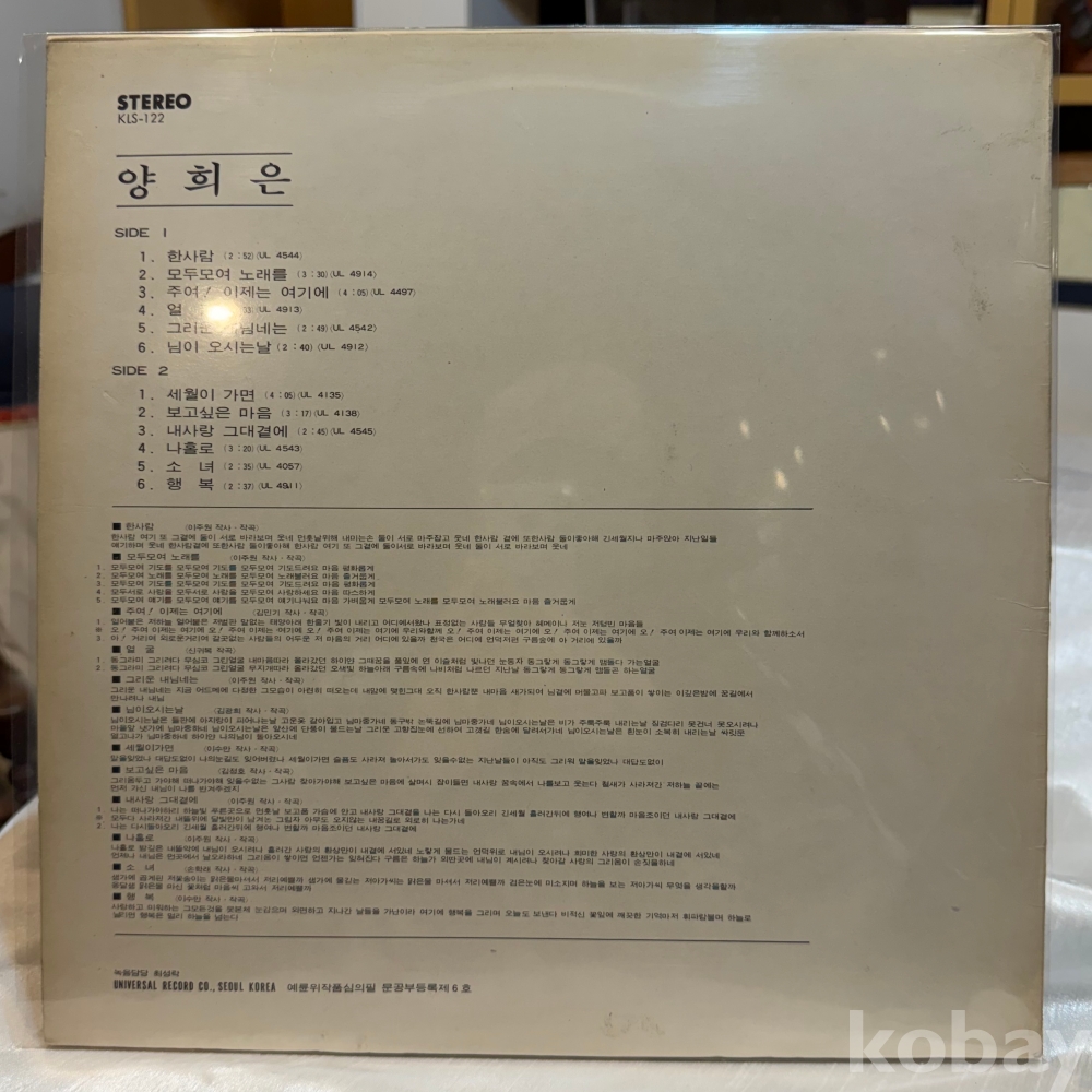 EX : 약간의 마모, 모서리 찢김 존재 음반상태