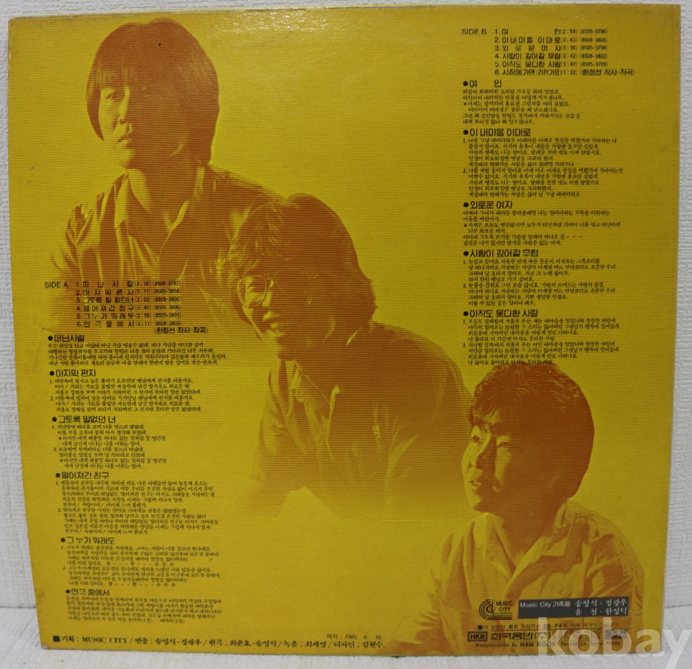 | 자켓상태 | EX : 약간의 마모, 모서리 찢김 존재 | 음반상태 | VG : 생활 기스 다수, 가벼운 노이즈 존재 | 발매정보 | 초반 | 가사지여부 | 유 |