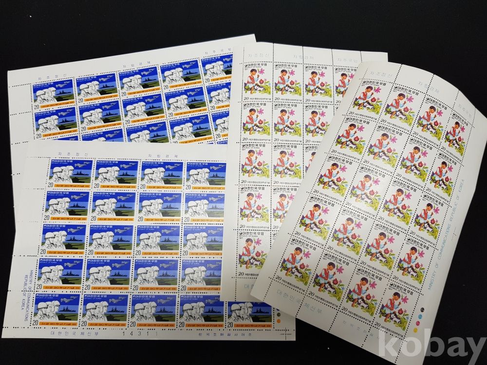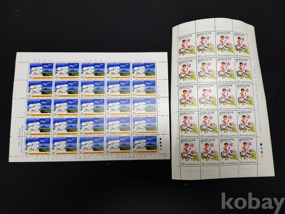 - 미사용 1970년대 기념우표 전지 2종 4매 모음