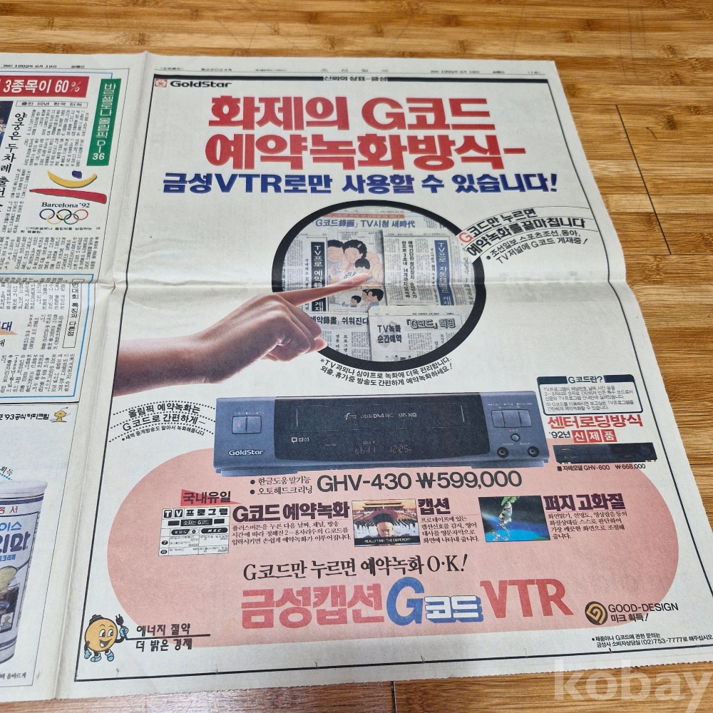 럭키금성 금성 캡션G코드 VTR ㆍ동서식품 아이스프리마 광고 조선일보 92년6월19일 올려드립니다