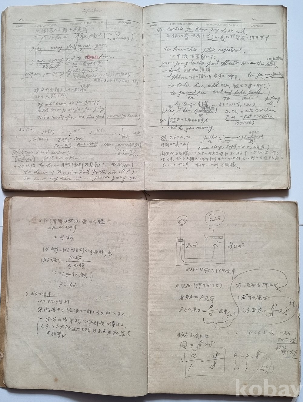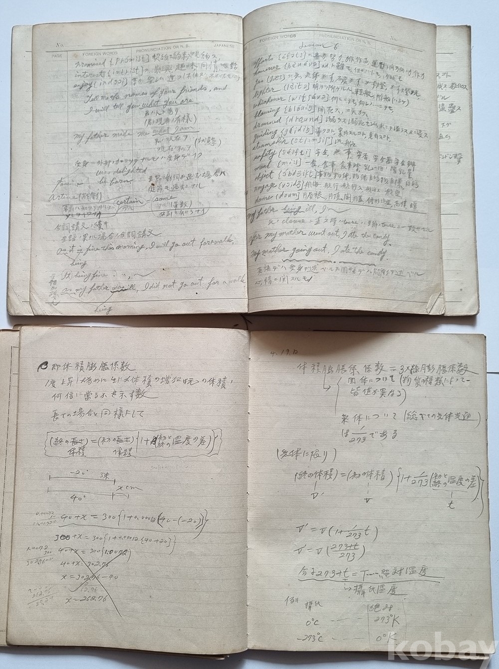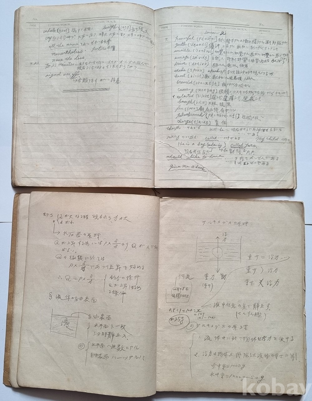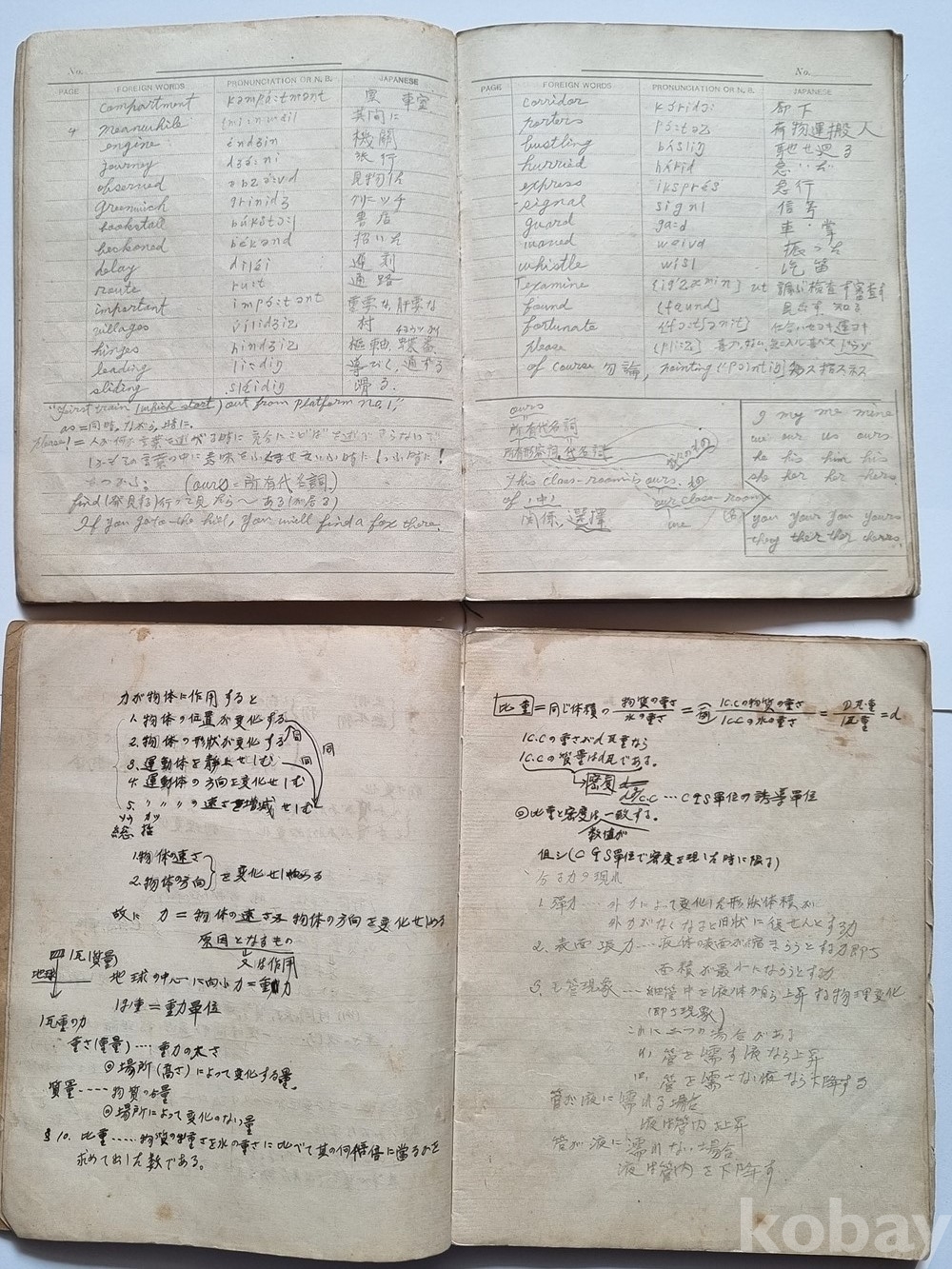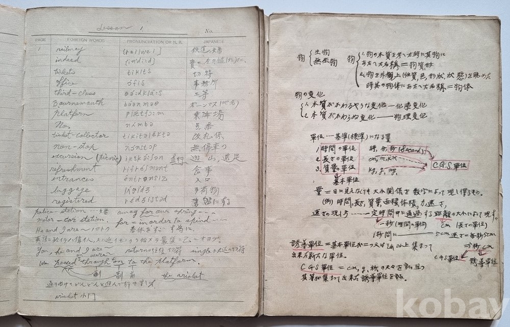 구성: 친필 학습 노트 총 2권 (영단어장 1권, 물리 및 수학 필기노트 1권)