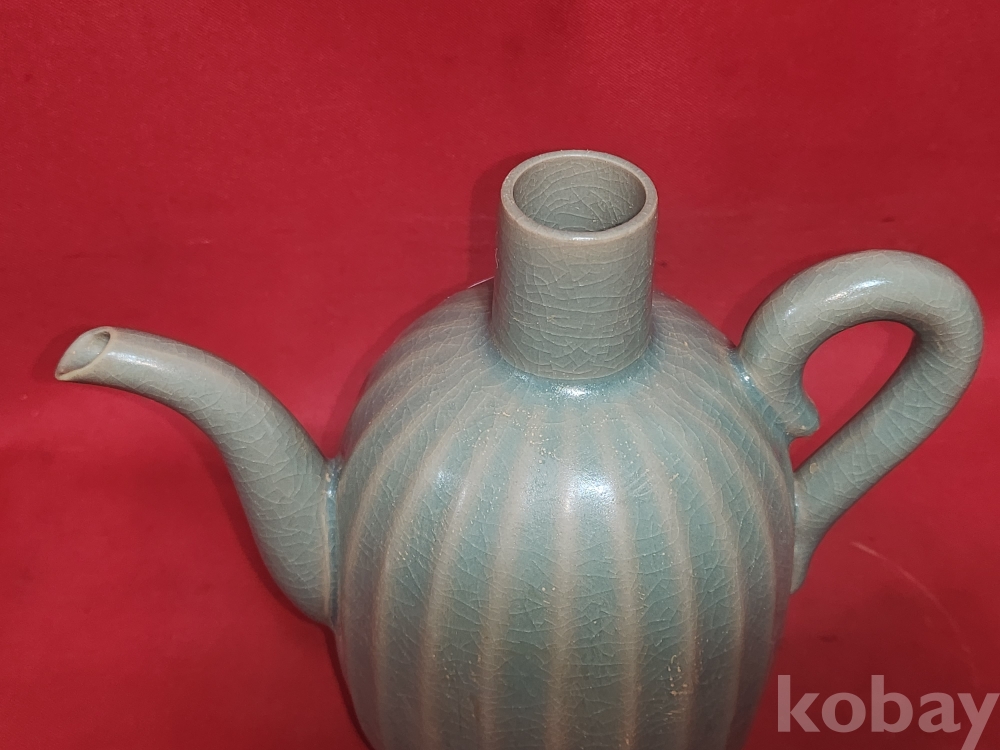여요(汝窯) 청자 과형(果形)문양 주전자입니다,