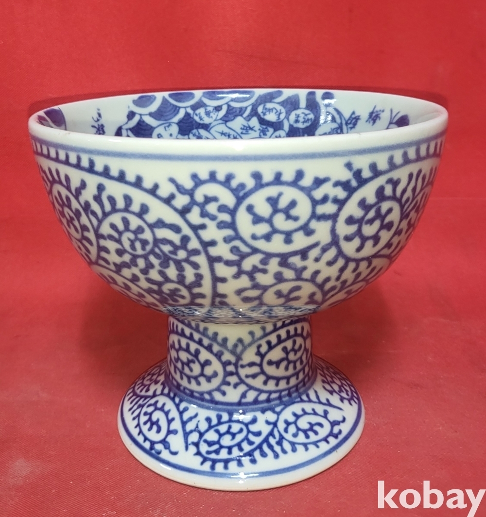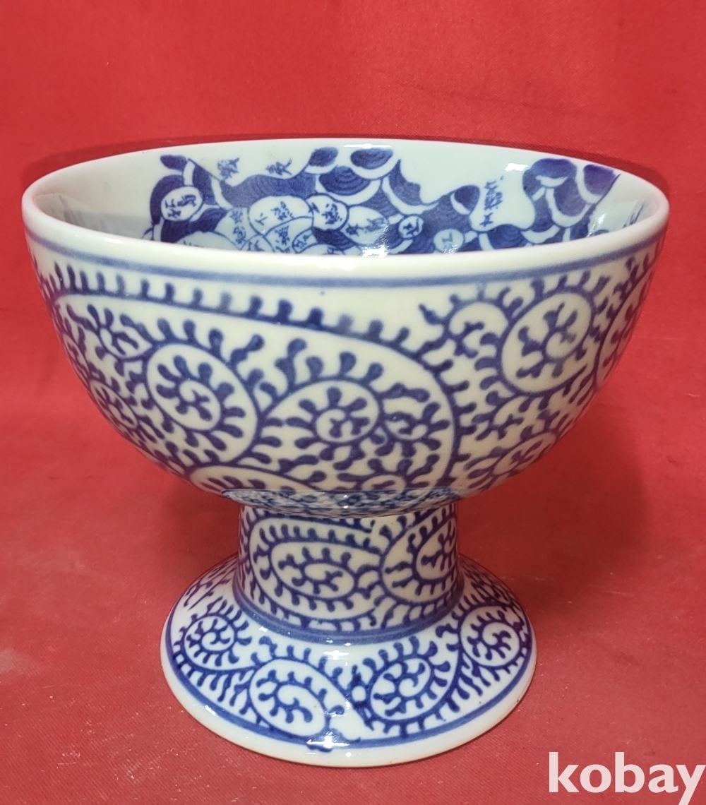 청화백자 중국 지도 지명(地名) 고족(高足) 완(碗)입니다,