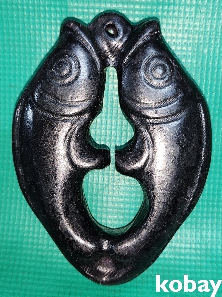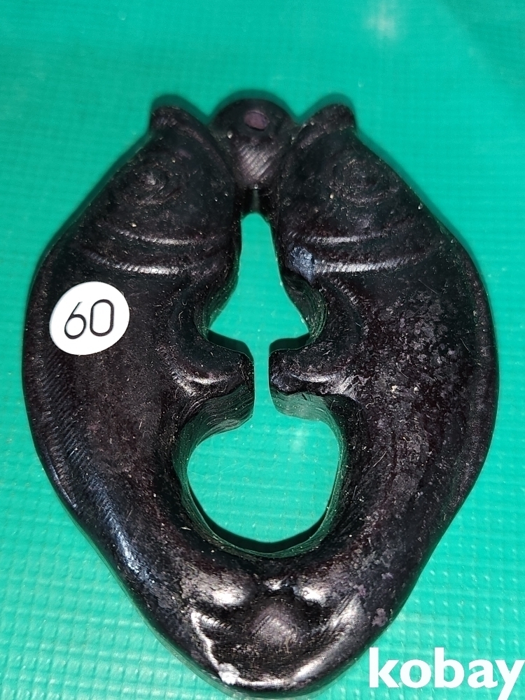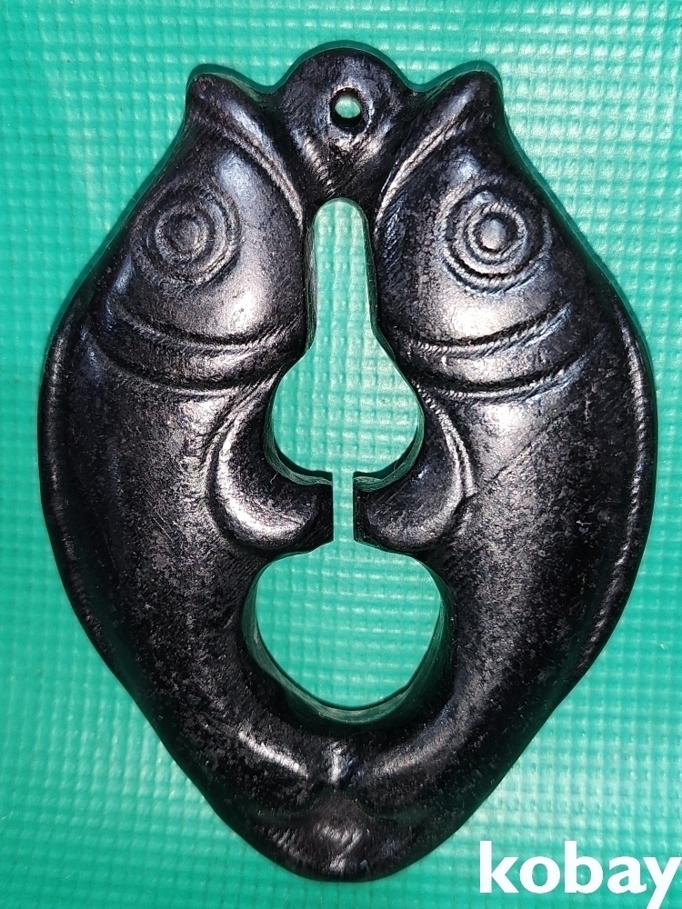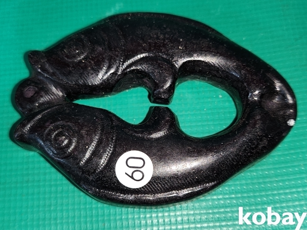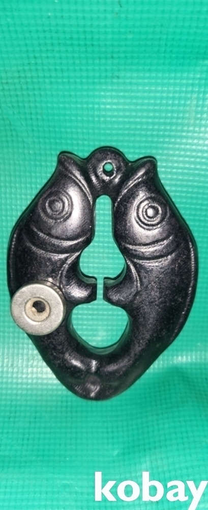 흑옥(黑玉)으로 만들어진 물고기(魚)문양 조각품으로 자석이 달라붙고 있습니다,