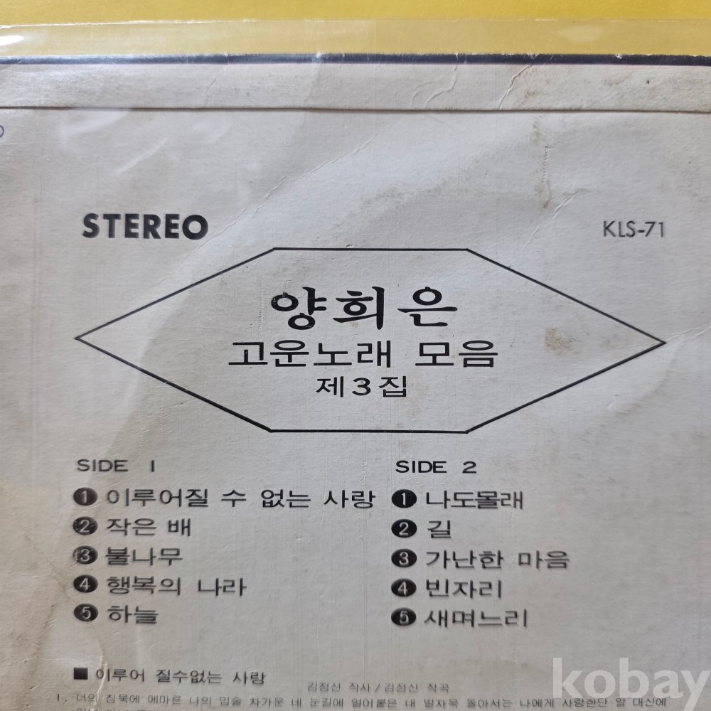 상품명 | 양희은 고운노래 모음 3집 [ 이루어질 수 없는 사람 / 나도 몰래 ] |