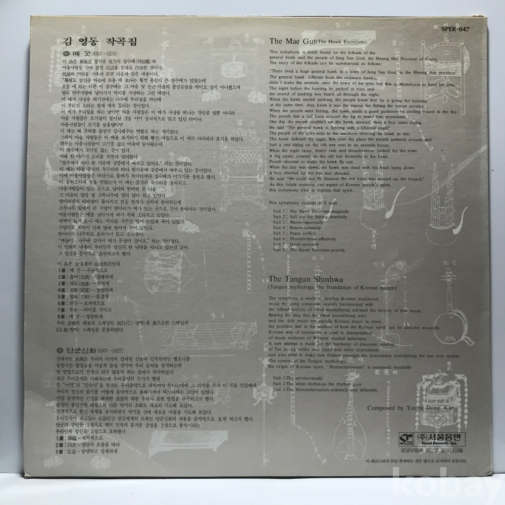LP 81,350-23 김영동 - 김영동작품집 (단군신화 / 매굿) _ 자켓 EX+ 알판 NM 년 국내반