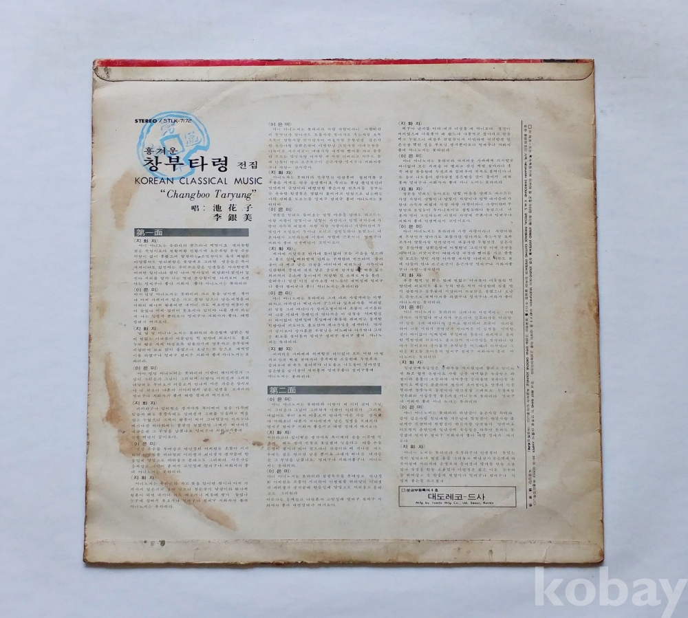 EX : 약간의 마모, 모서리 찢김 존재 음반상태