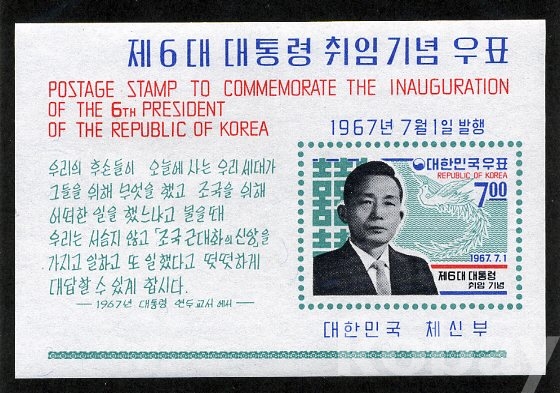 1967년 제6대 대통령 취임기념 우표 소형시트 입니다
