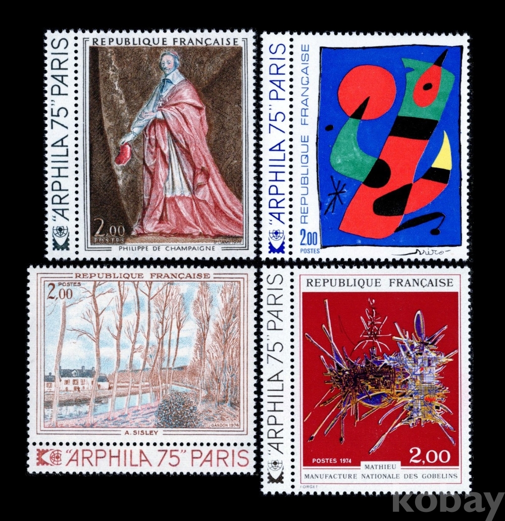 프랑스) 1974년 명화, 리슐리외 추기경(필립 드 샹페뉴作),Painting(호안 미로作),루앙 운하(알프레드 시슬레作), 니콜라 푸케를 기리며(조르주 마티외作 태피스트리)