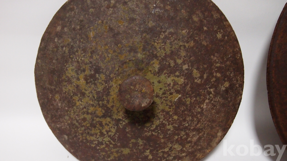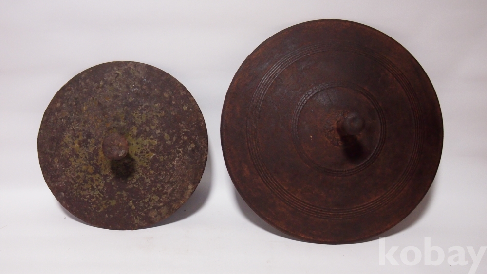 전통 민속 생활사 전래품/오래된 주물형 무쇠 솥뚜껑 2점입니다. 녹자욱은 있습니다. 사용 시 브러쉬 연마 필요합니다. 연마 후 바베큐 그리들로 사용하는 인기 있는 물품입니다.