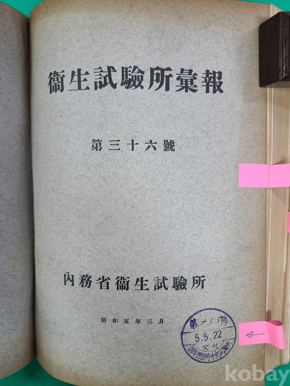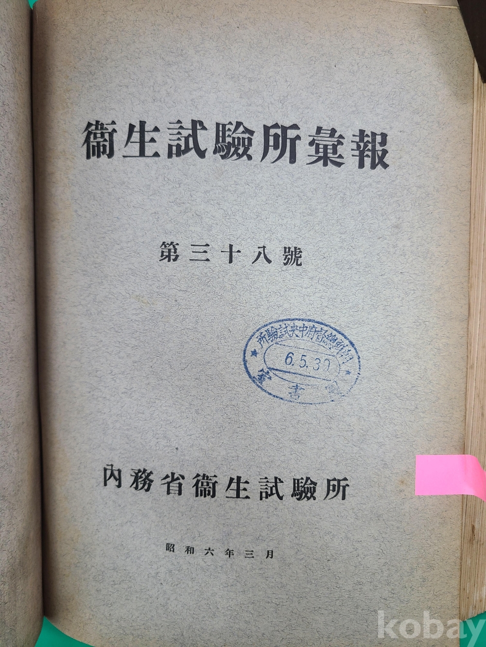 ▶ 1929-31년 일본 내무성위생시험소 발행 [위생시험소휘보] 제33,34,35,36,37,38호/6책 합본하였음