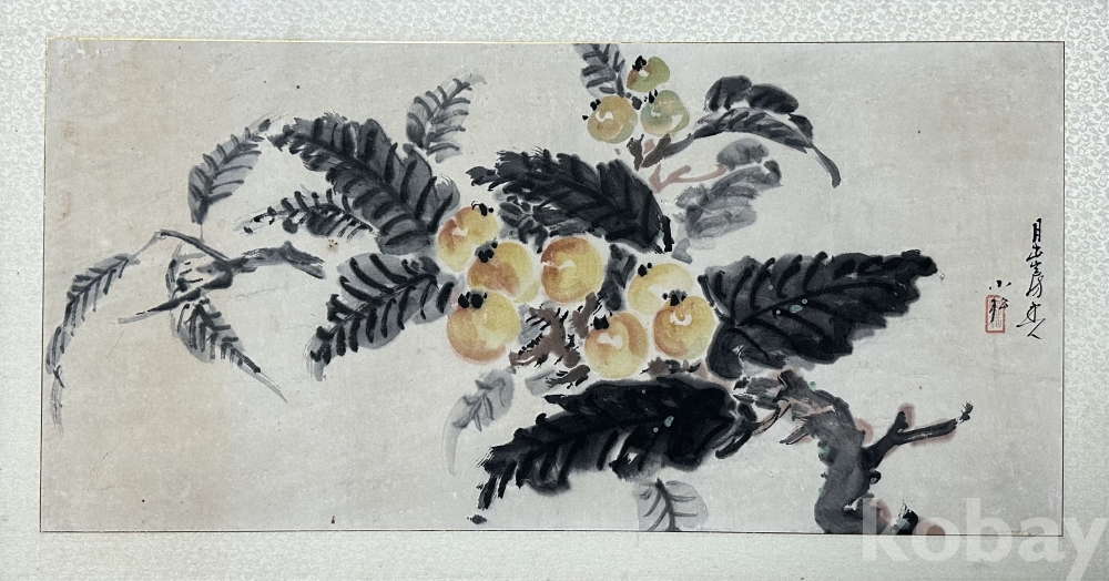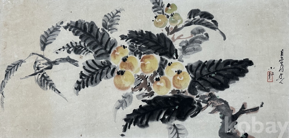 노란 과실이 탐스럽게 맺힌 가지를 소재로 한 동양화 작품입니다. 먹의 농담을 중심으로 잎과 가지를 간결하면서도 힘 있게 표현했고, 과실 부분에는 옅은 황색과 담채를 더해 부드럽고 은은한 분위기를 살렸습니다. 전체적으로 고전적인 문인화풍의 소품으로 감상성이 좋은 편입니다.