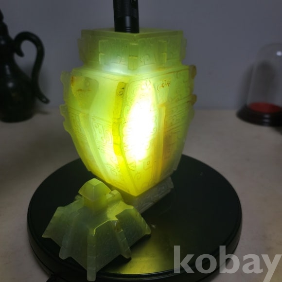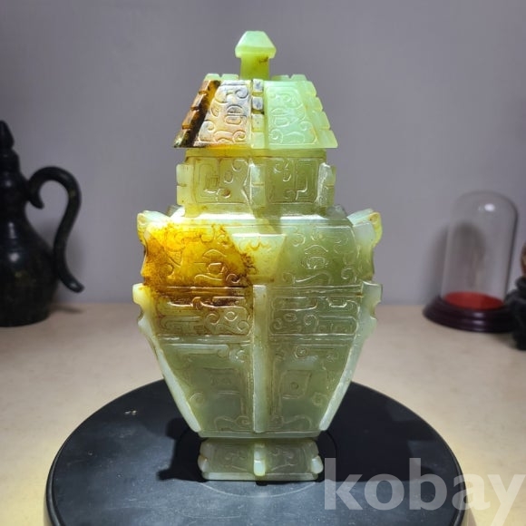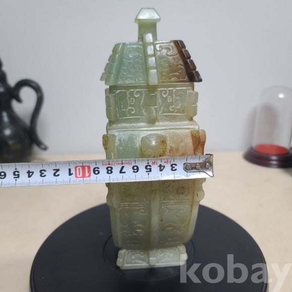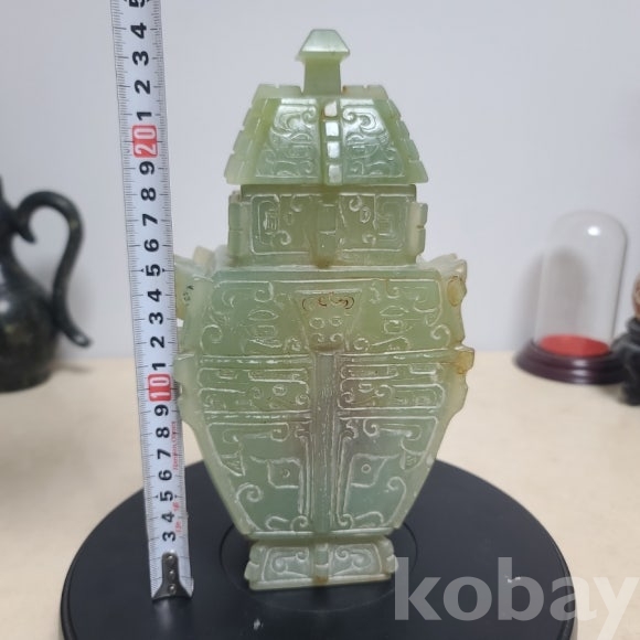 투명도와 전면에 도철문이 가득 담긴 직접 옥을 조각한 옥 합입니다 귀한 작품 소개합니다
