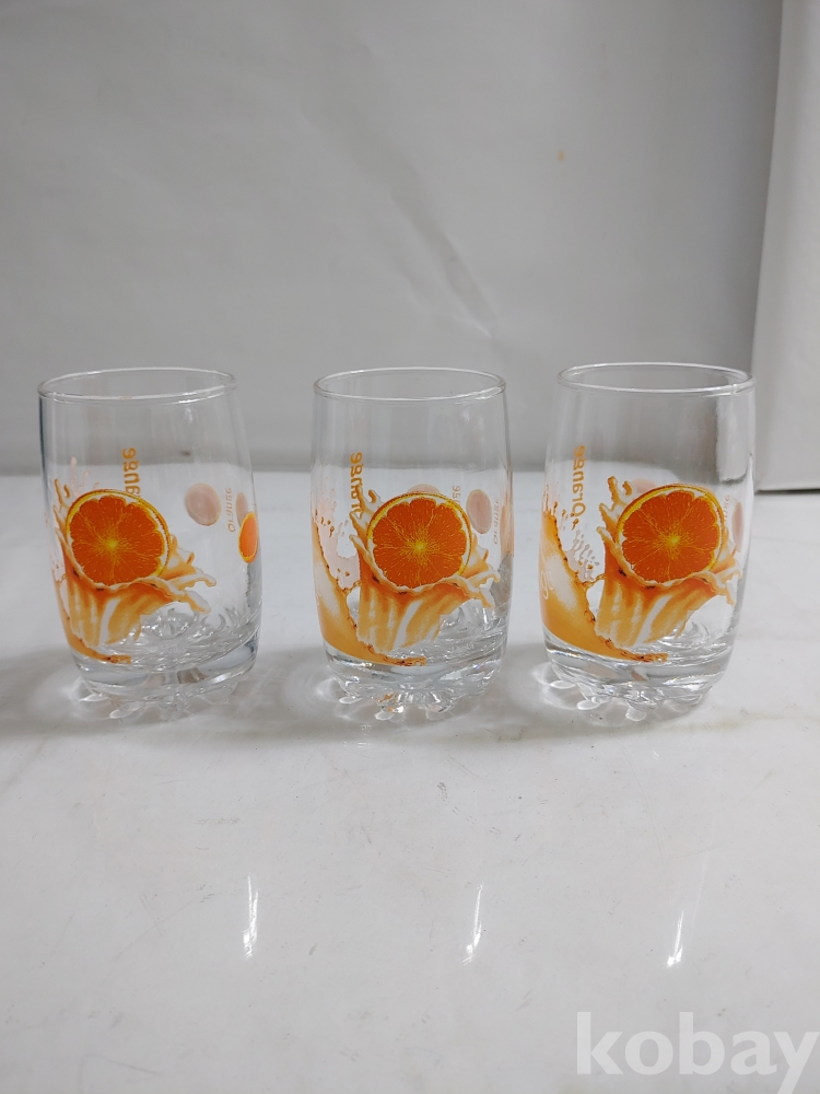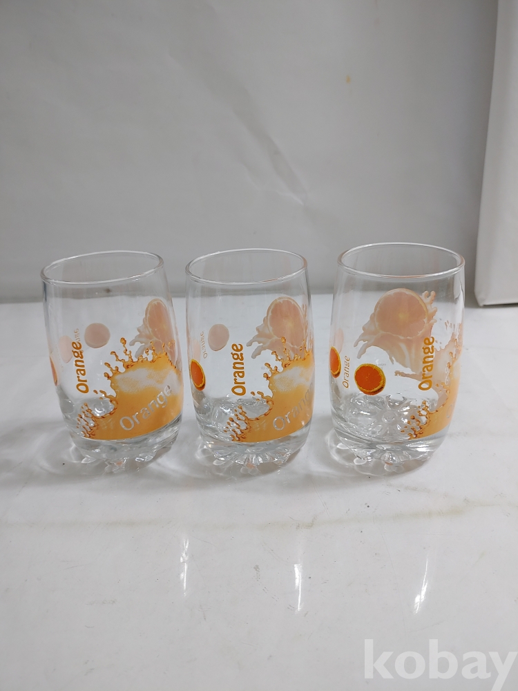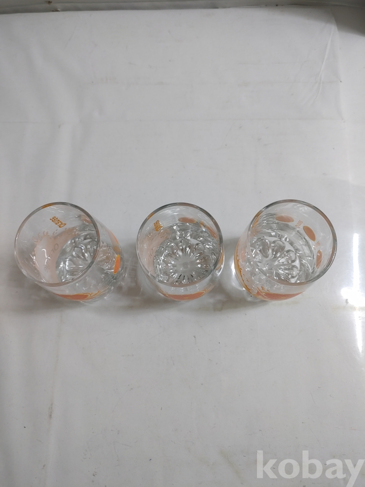 ★천원출발★ P-3-198 빈티지 오렌지 유리컵 3개