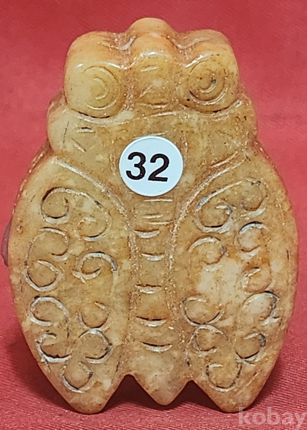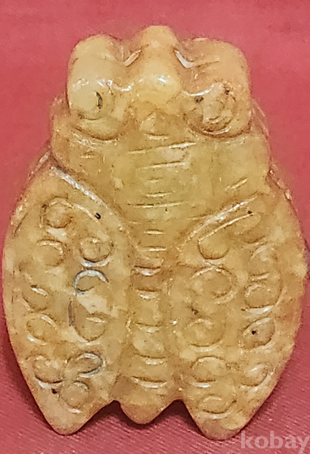 옥(玉)으로 만든 양면 매미 문양 조각품입니다,