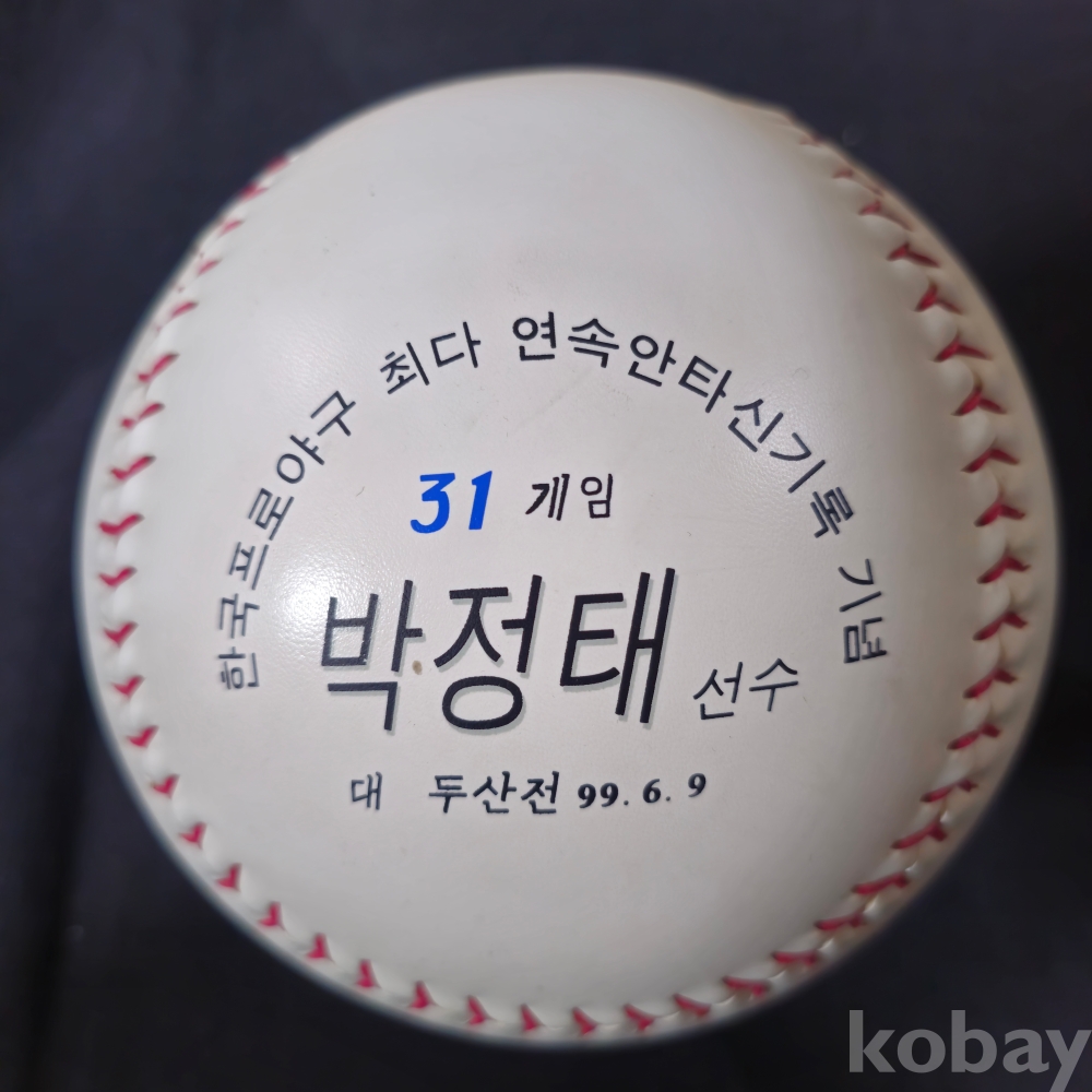 (((프로야구/야구공/싸인볼))) 1999년 롯데자이언츠 박정태선수 한국프로야구 최다 연속안타 신기록기념 (30게임) 친필싸인 흑구거인 대형 로고볼