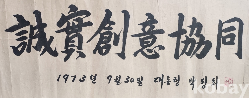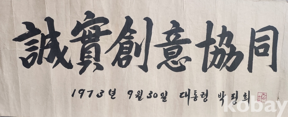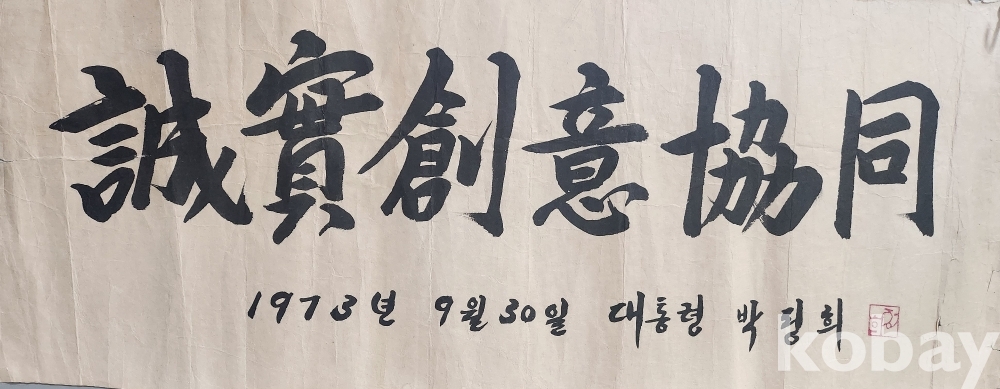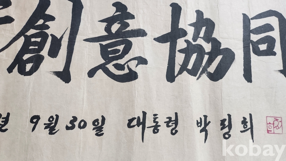 대통령 박정희 " 성실창의협동"미감정 서예입니다,