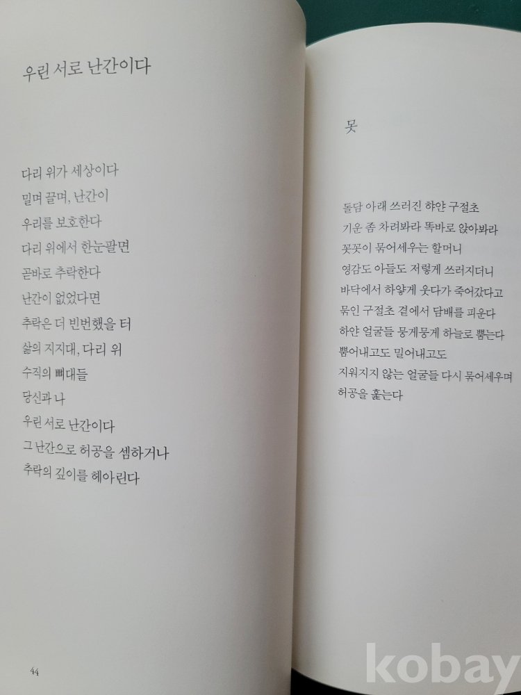 2014년 발간한 첫 시집 『우린 서로 난간이다』