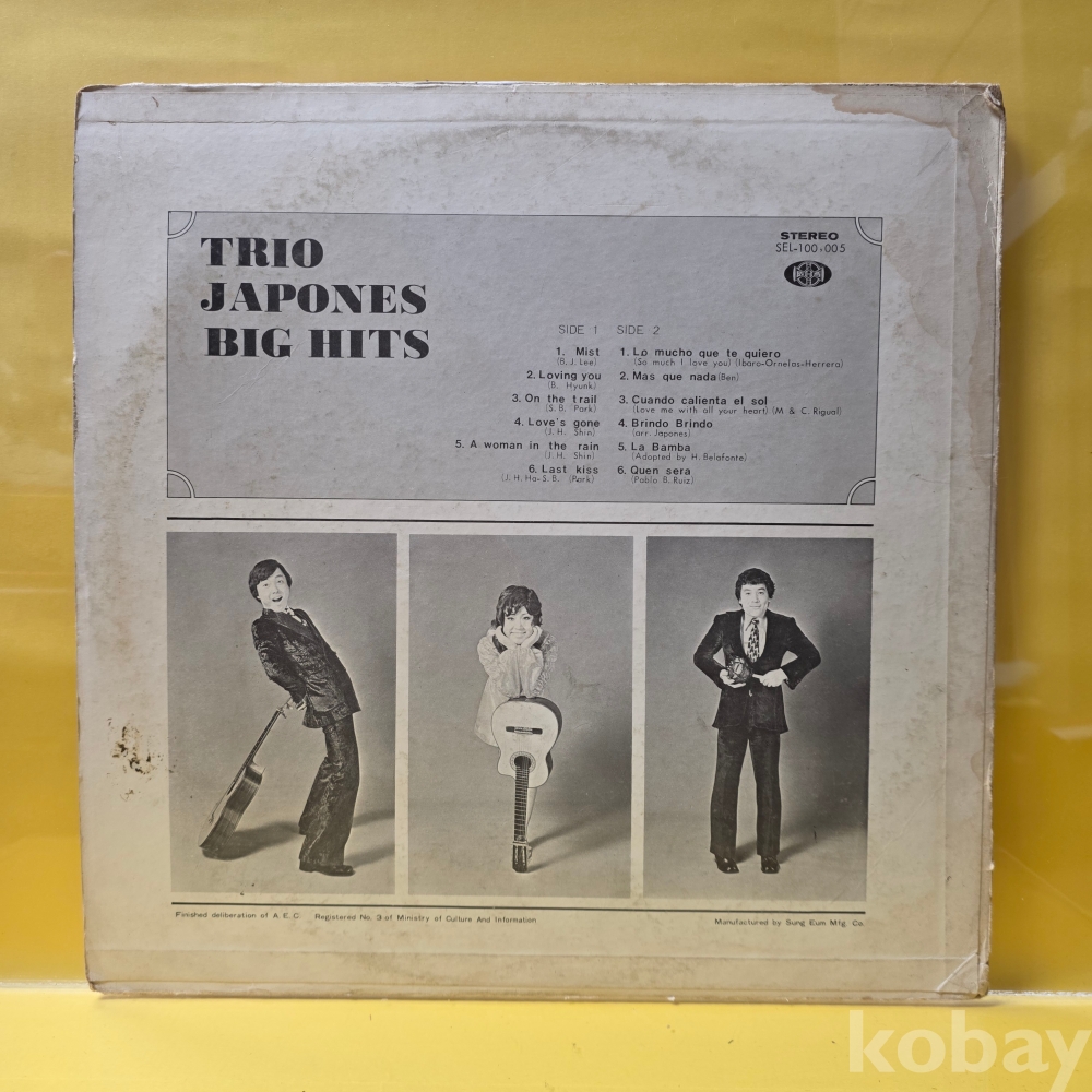 상품 설명 | Side A 1. Mist 2. Loving you 3. On the trail 4. Love's gone 5. A woman in the rain 6. Last kiss Side B 1. Lo mucho que te quiero 2. Mas Que Nada 3. Cuando calienta el sol 4. Brindo Brindo 5. La Bamba 6. Que Sera |