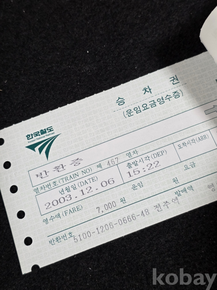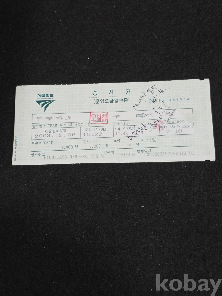 (((철도자료/지하철자료))) 2003년 한국철도 승차권 (무궁화호) (전주-여천) (오발행/반환증 2매)