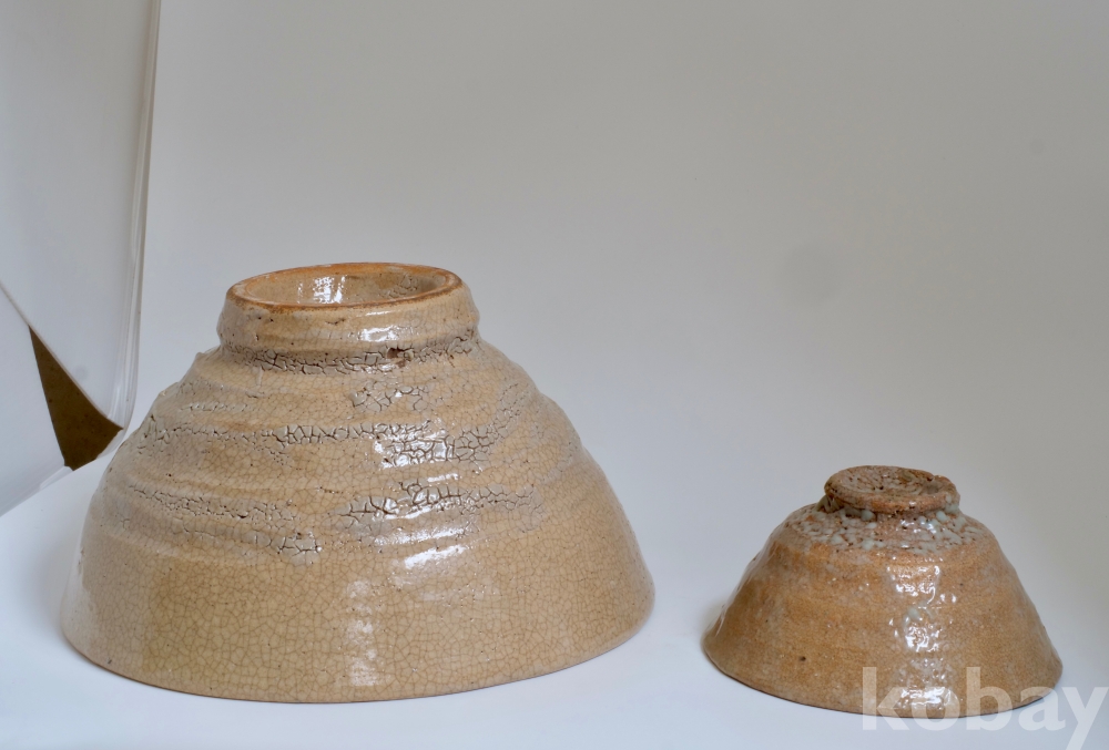 사이즈 비교하시라고 정사이즈 정호다완 이랑 같이 찍었습니다. 오른쪽은 사이즈 참고용 다완입니다.