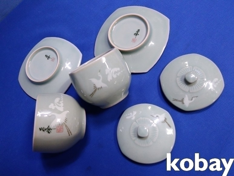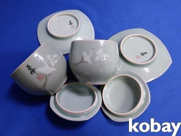 석봉 조무호 선생님의 운학문양 청자 찻잔셋트 입니다.