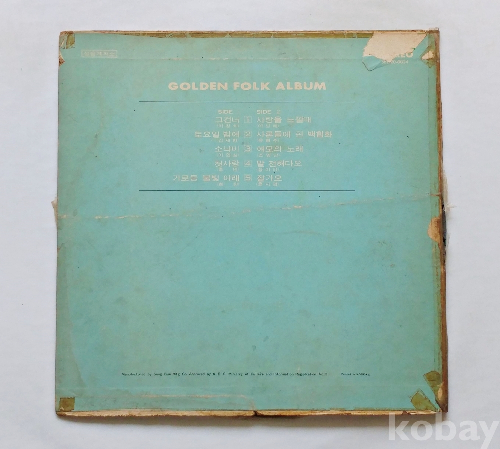 | 자켓상태 | VG : 주름, 접힘, 모서리 찢김 다수 | 음반상태 | EX : 재생에 영향 없는 가벼운 기스 존재 | 발매정보 | 알수없음 | 가사지여부 | 무 |