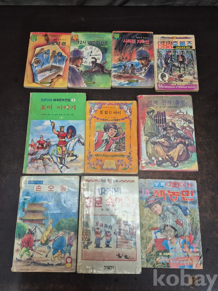 1970-80년대 어린이용 책10점 일괄 명탐정 호움즈 4권 호머이야기 거지신사 휴뷴 집없는아이 손오공 따개비한문숙어 어린이새농민등 16*23*2